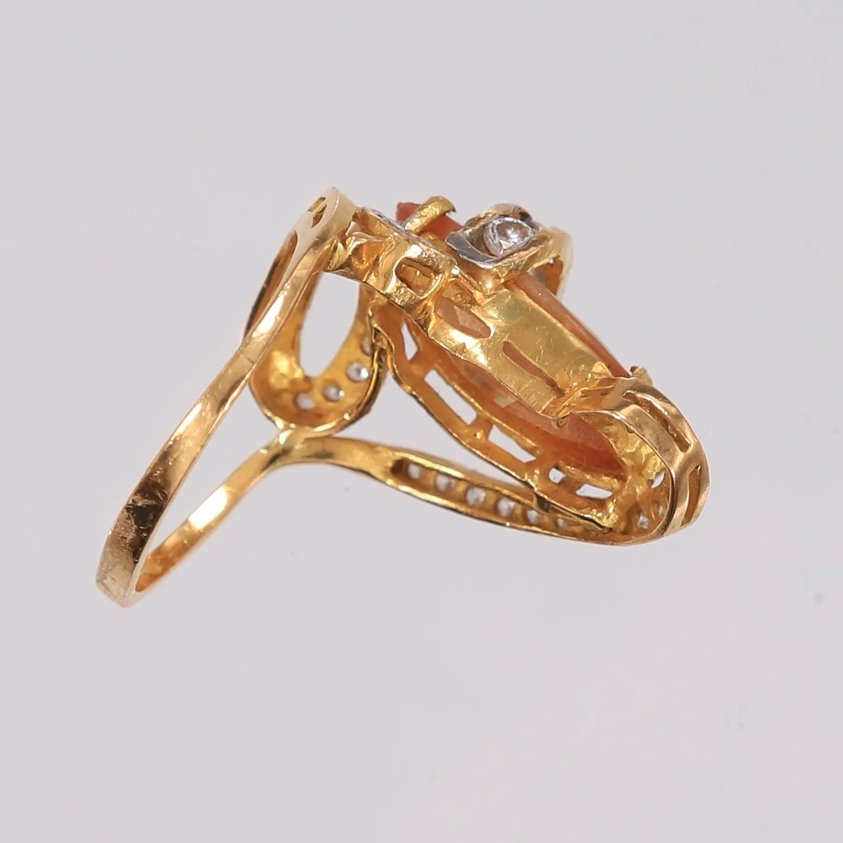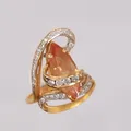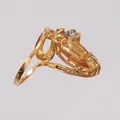 Ring med én gul og mange små blanke stener, ø 16,8mm, bredde 1-24mm, 20K, Utstilt på Grønland Vekt: 7 g. Kontakt Lånekontoret for frakt.