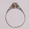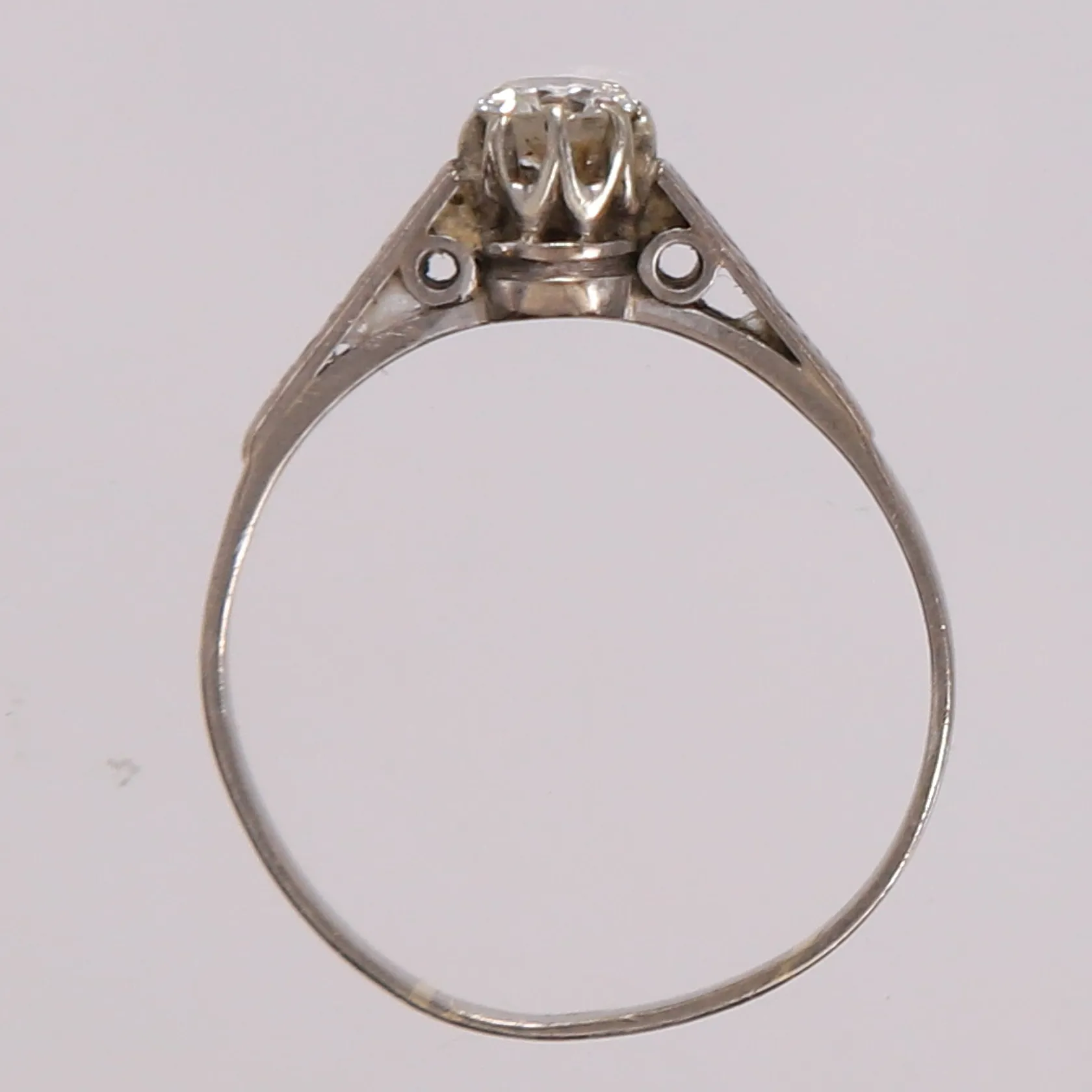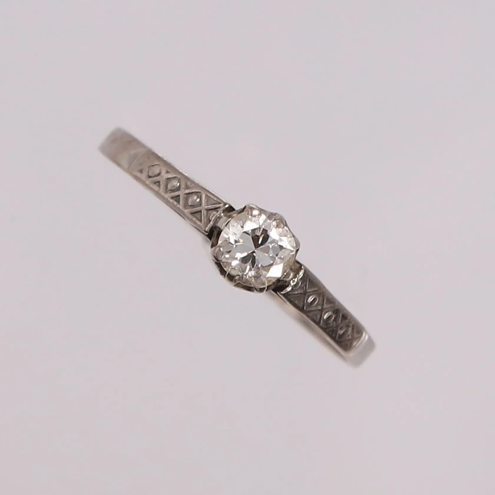 Ring med diamant ca. 0,25ct, ø18,5mm, bredde 1,5-4,8mm, 14K. Utstilt på Grønland. Vekt: 1,9 g. Kontakt Lånekontoret for frakt.