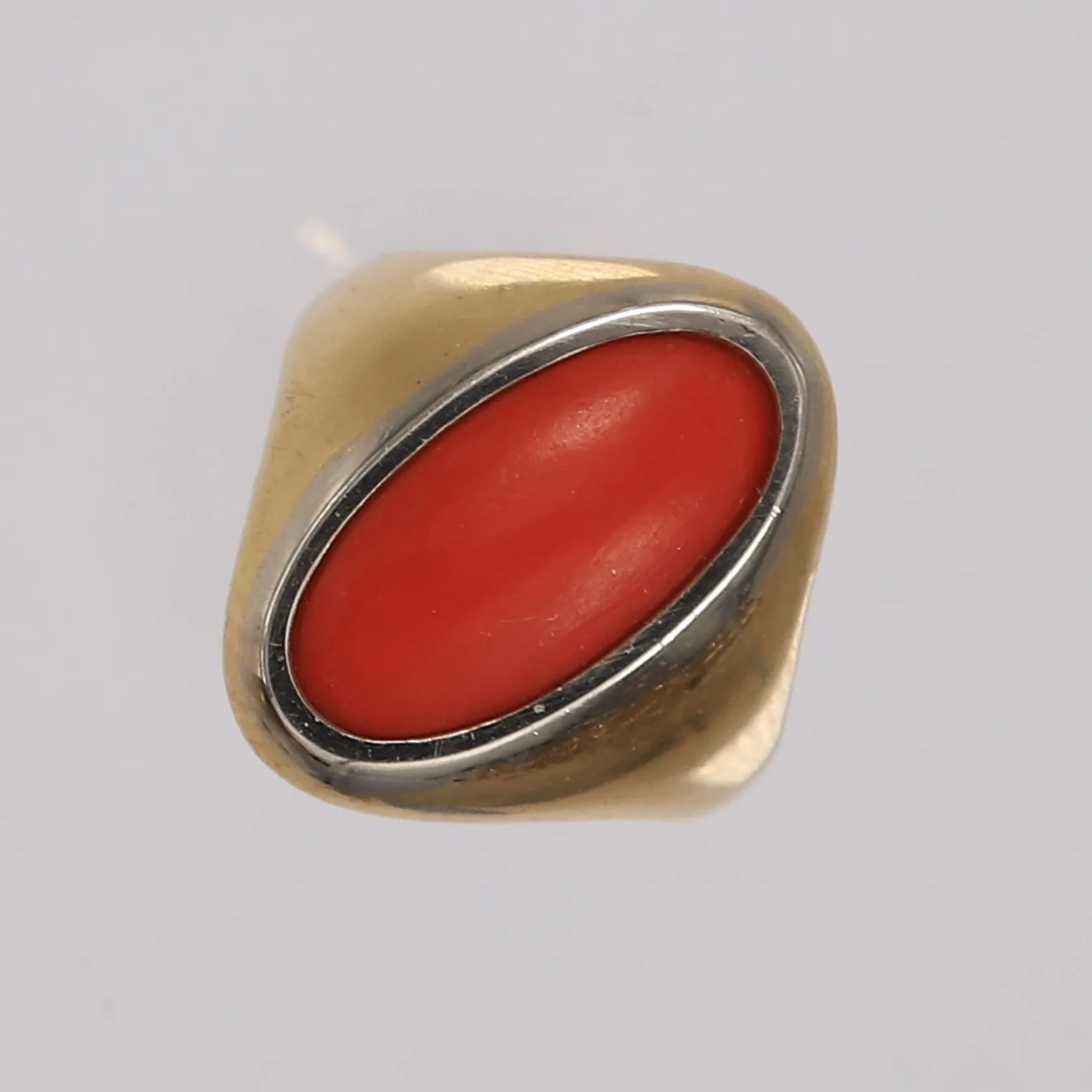 Ring med rød sten, ø16,3mm, bredde 3-21mm, 18K. Utstilt på Grønland. Vekt: 6,6 g. Kontakt Lånekontoret for frakt.