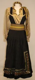 Pascal festdrakt, str 10, skjorte str. 34/36, forkle, belte, hårbånd, 2 søljer, 1 par mansjettknapper. Hel lengde 139cm, liv 72cm Kontakt Lånekontoret for frakt.
