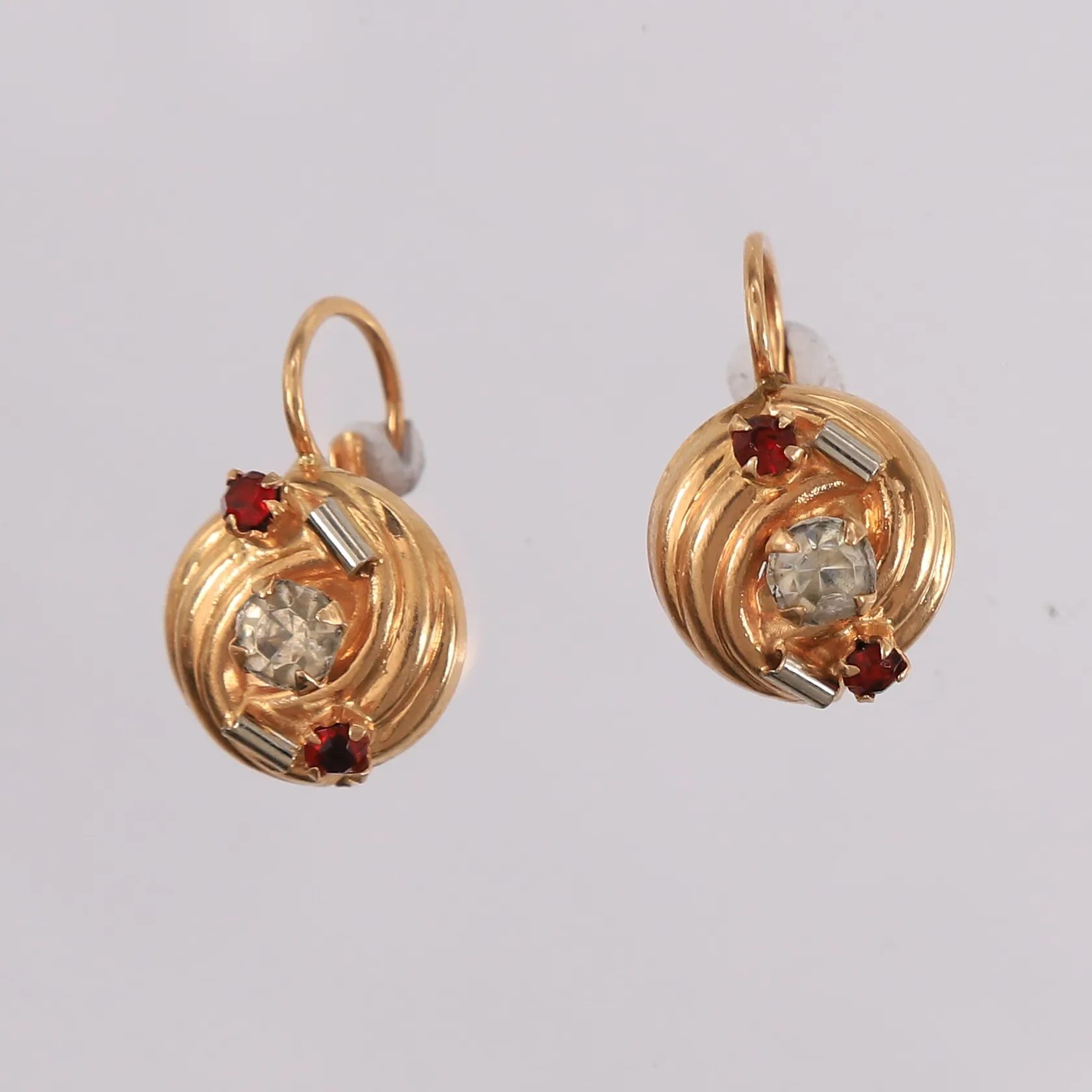 1 par øredobber med røde og klar sten, 18K Vekt: 4,8 g. Kontakt Lånekontoret for frakt.