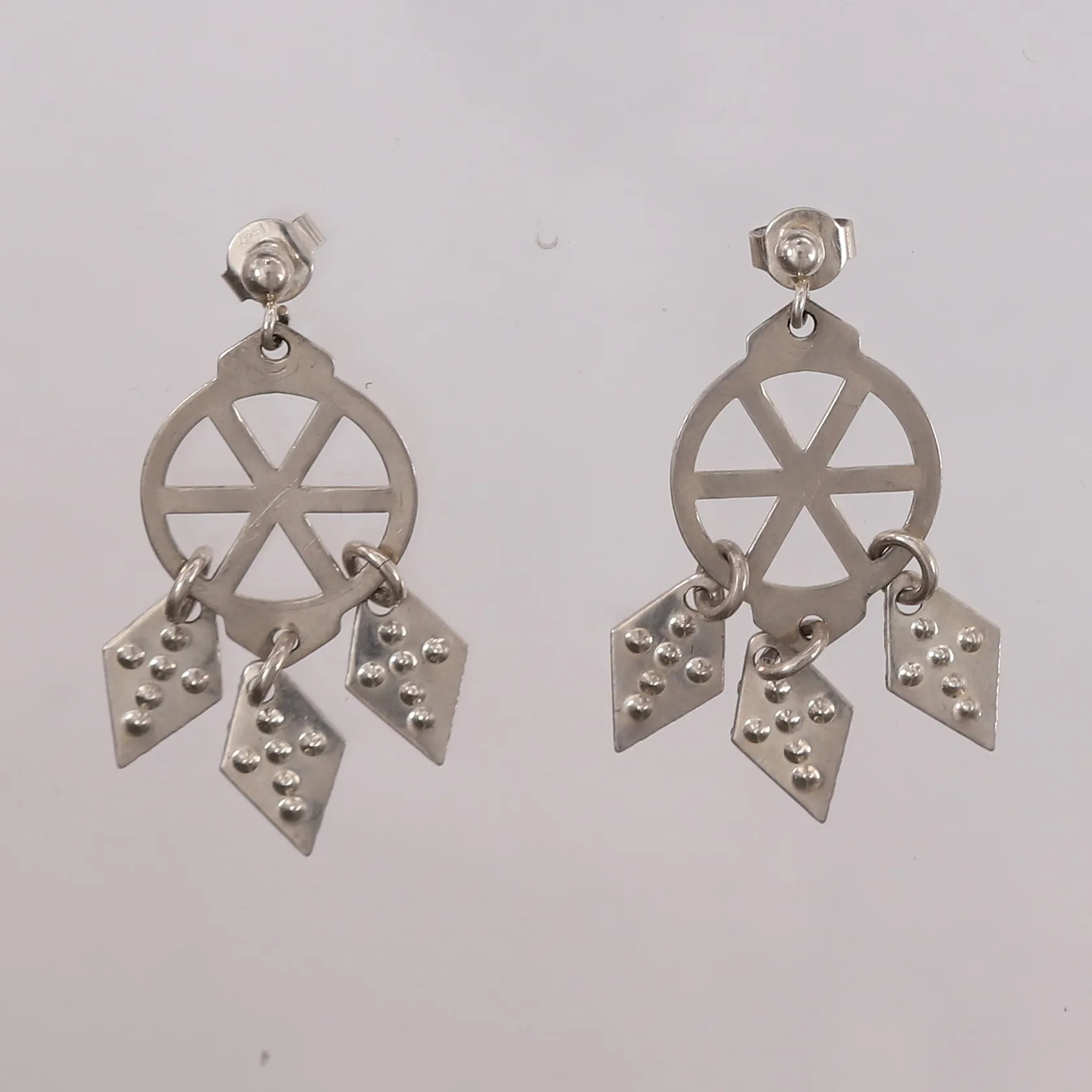 Ett par øredobber til trønderbunad, 830S. Vekt: 3,2 g. Kontakt Lånekontoret for frakt.