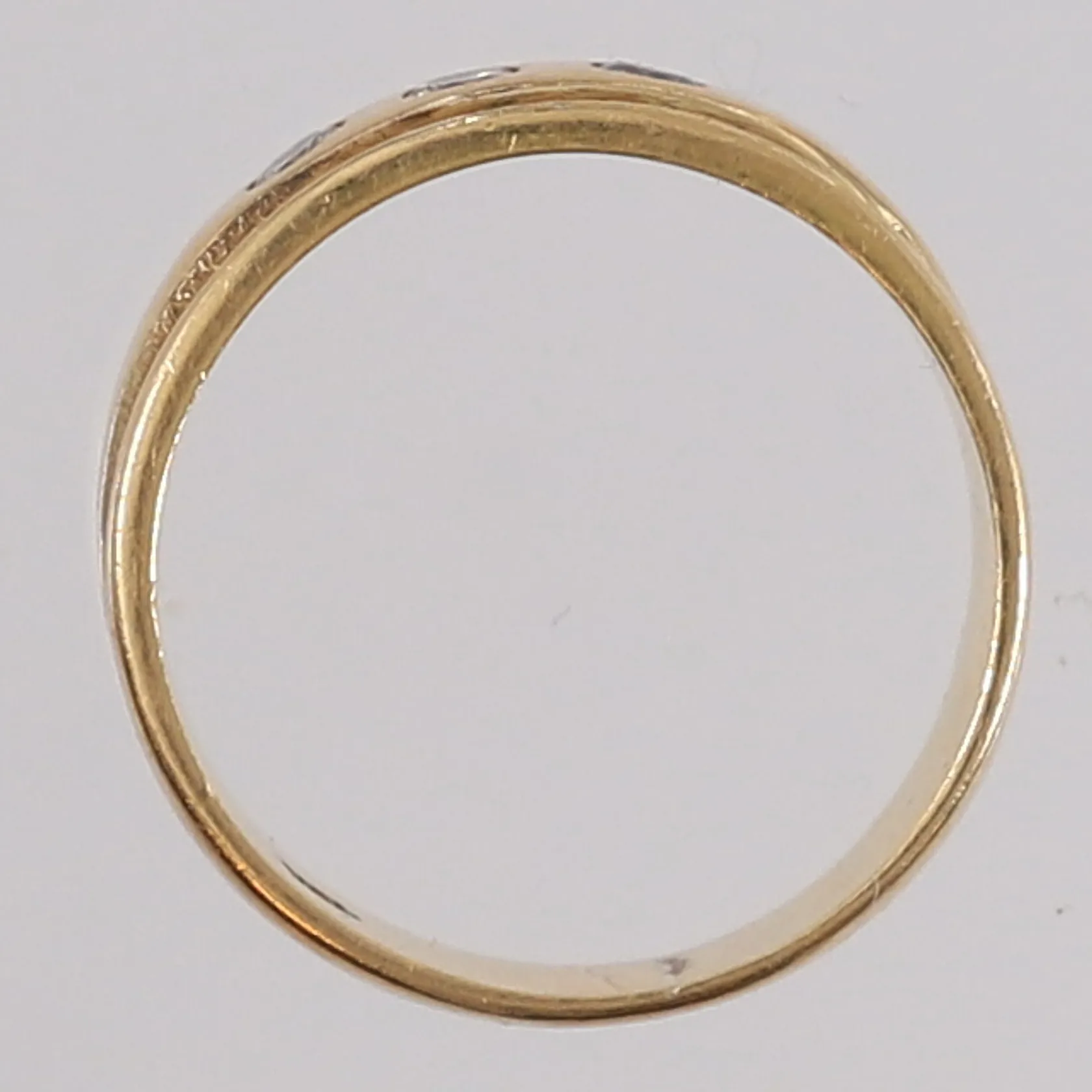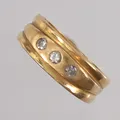 Ring med diamanter (3 x ca. 0,04ct), ø16,5mm, bredde 6,7mm, 18K Vekt: 5,1 g. Kontakt Lånekontoret for frakt.