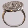 Ring med blanke stener, ø17mm, bredde 2,6- 18,4mm, hvitt gull, 14K Vekt: 6,1 g. Kontakt Lånekontoret for frakt.