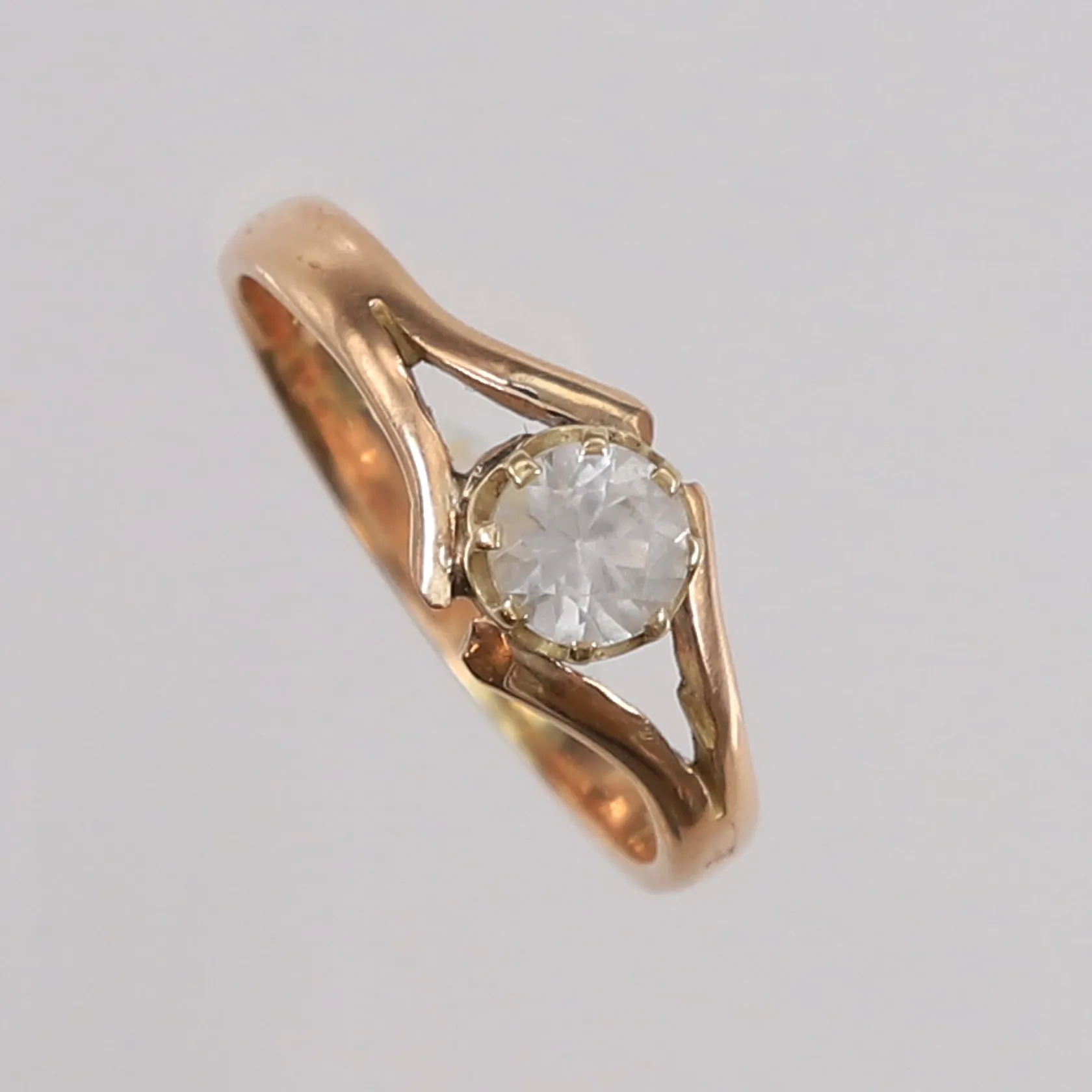 Ring med blank sten, ø18,3mm, bredde 2,4- 7,4mm, 14K Vekt: 2,9 g. Kontakt Lånekontoret for frakt.