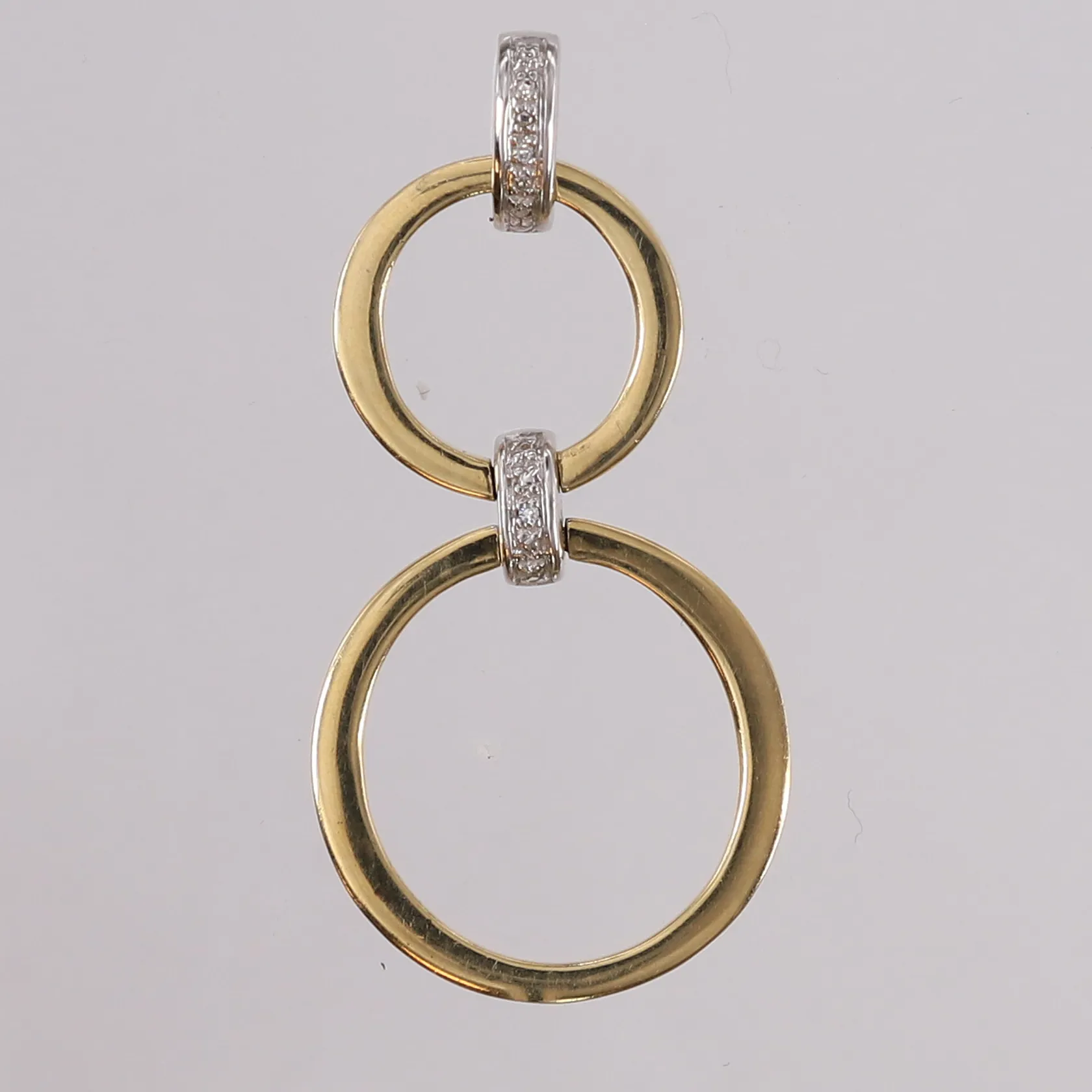 Anheng med blanke stener, to-farget, 41x21mm, 14K Vekt: 3,2 g. Kontakt Lånekontoret for frakt.
