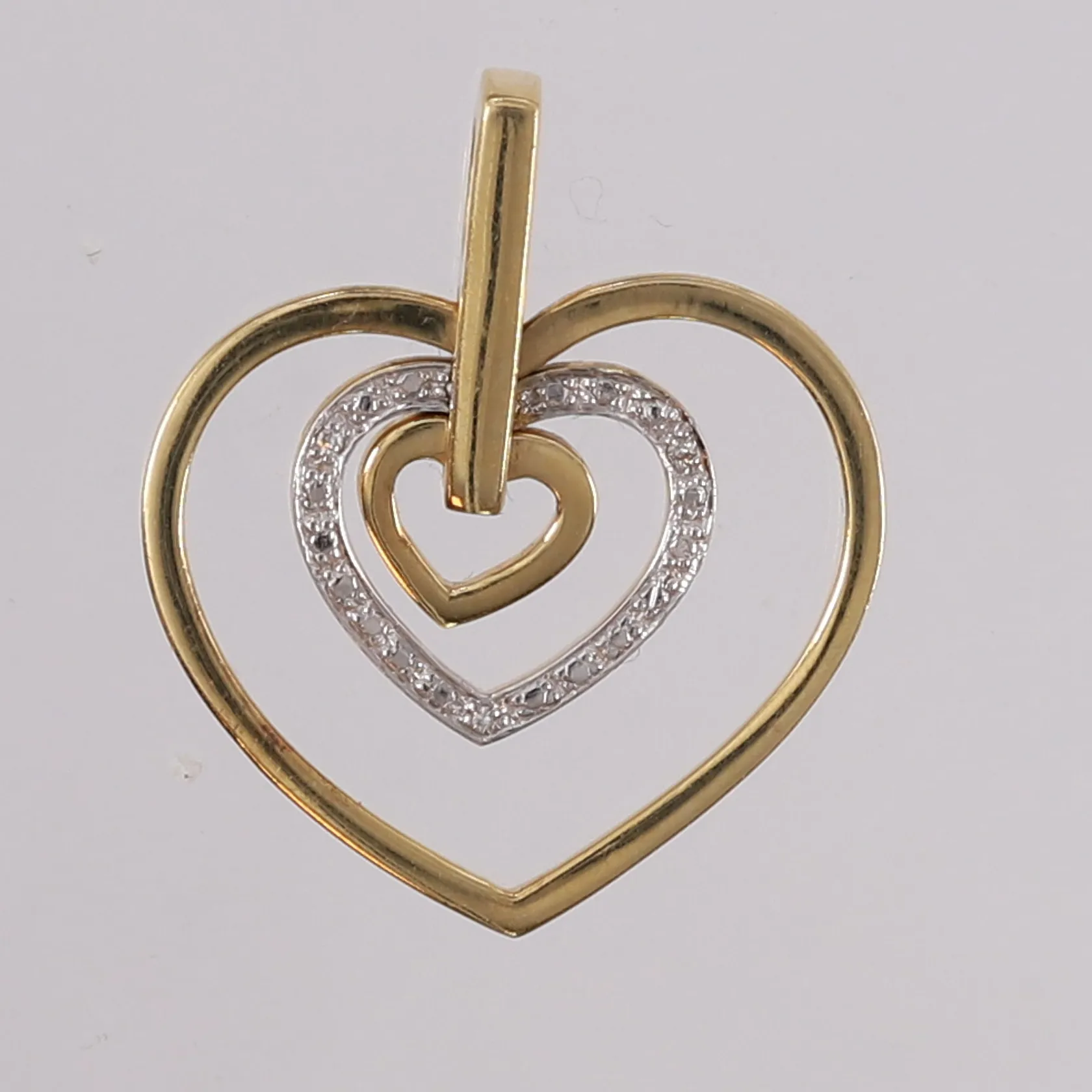 Anheng hjerte med blanke stener, 26x23mm, 14K Vekt: 2,4 g. Kontakt Lånekontoret for frakt.