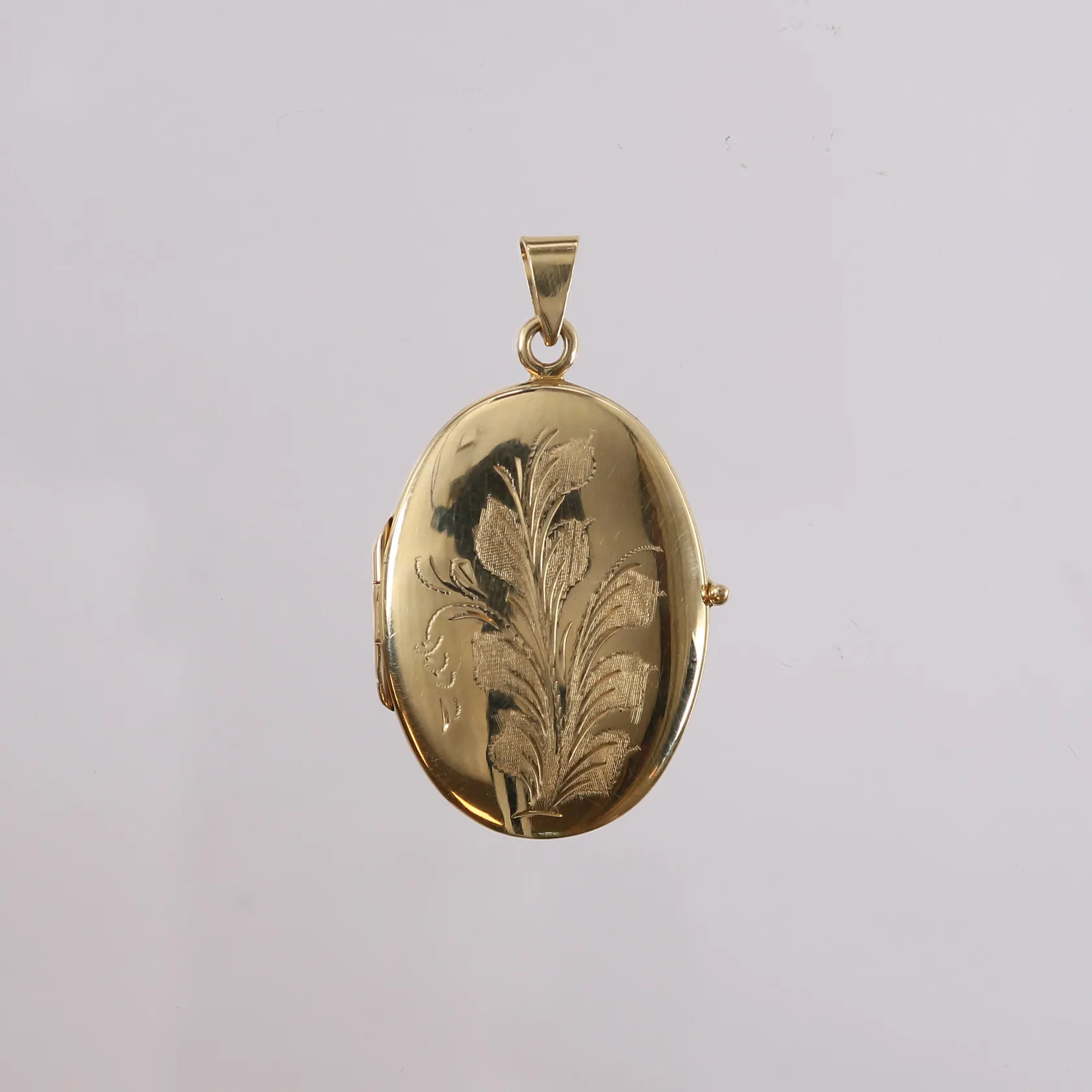 Medaljong/Anheng, åpningsbar, høyde ca 44mm, 14K Vekt: 9,2 g. Kontakt Lånekontoret for frakt.