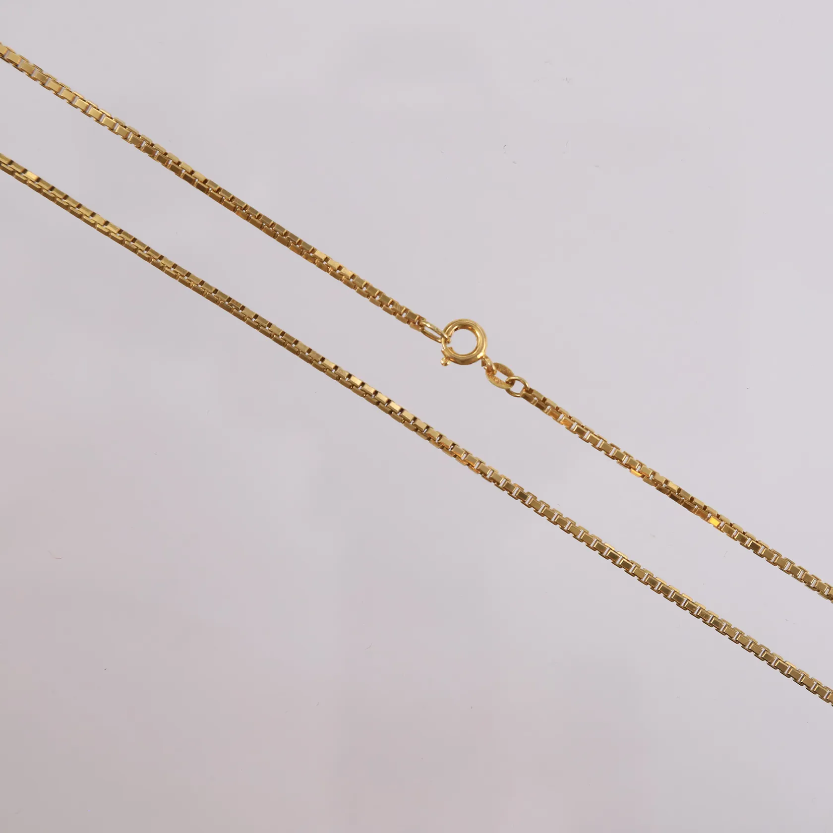 Halskjede, venezians, lengde 70cm, bredde 2mm, defekt lås, 14K. Vekt: 15,5 g. Kontakt Lånekontoret for frakt.