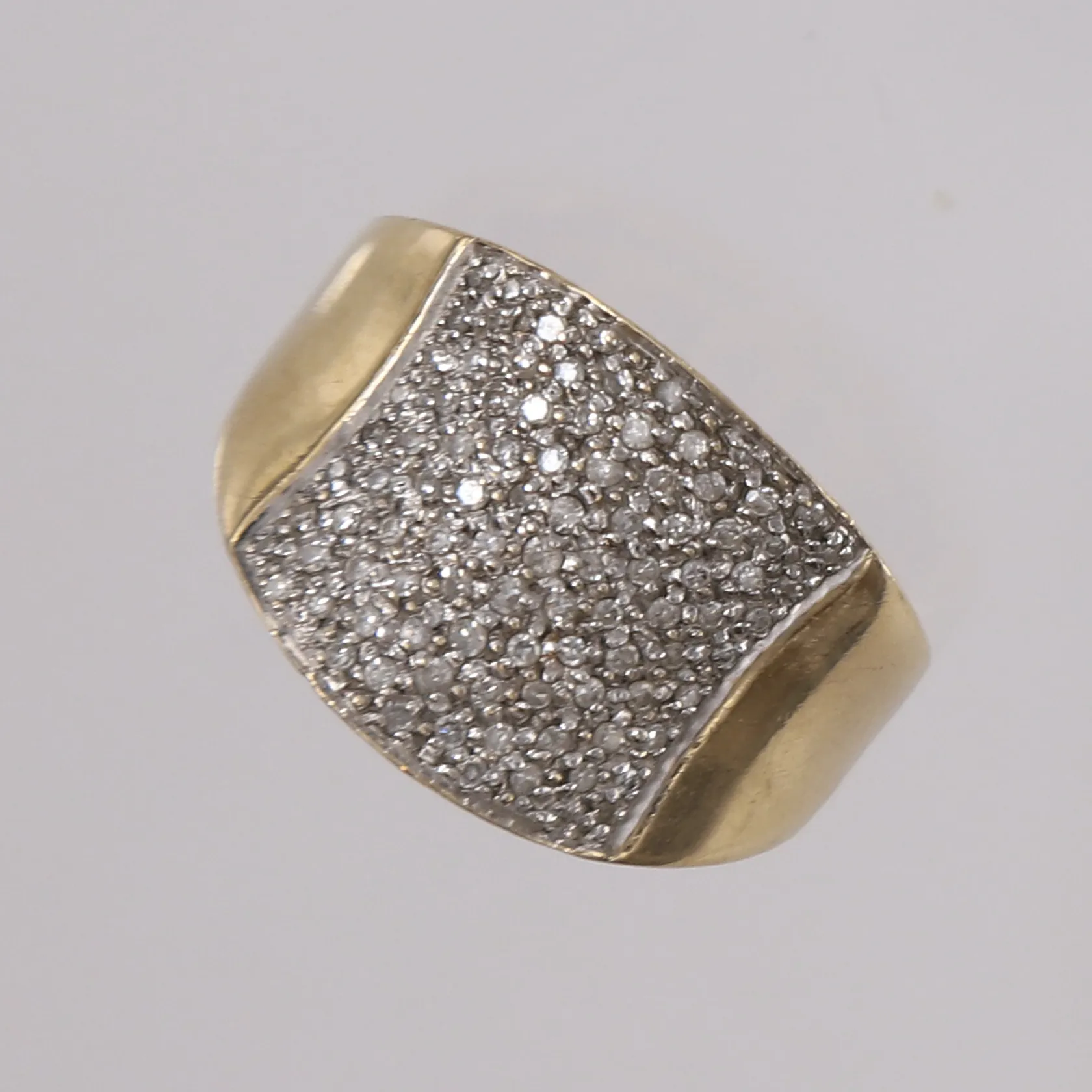 Ring med diamanter og blanke stener, ø18,7mm, bredde 3,2- 15,7mm, 14K Vekt: 10,7 g. Kontakt Lånekontoret for frakt.