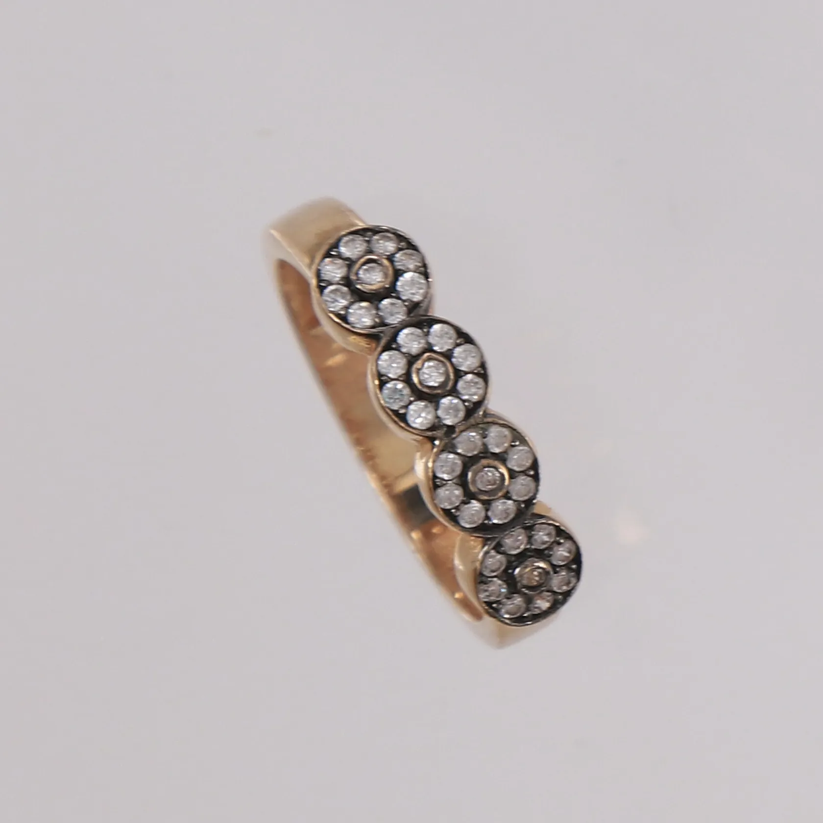 Ring med blanke stener, ø17,4mm, bredde 2,7- 5mm, 14K Vekt: 2,6 g. Kontakt Lånekontoret for frakt.