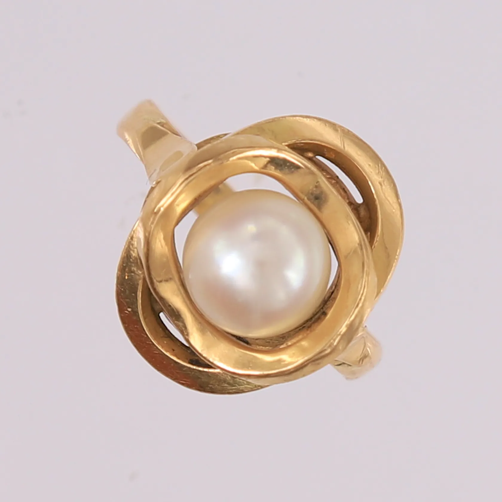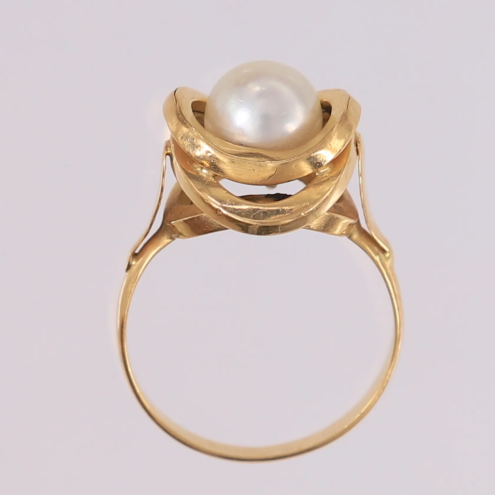 Ring med perle, ø17,3mm, bredde 2,3mm, 18K Vekt: 3,6 g. Kontakt Lånekontoret for frakt.