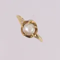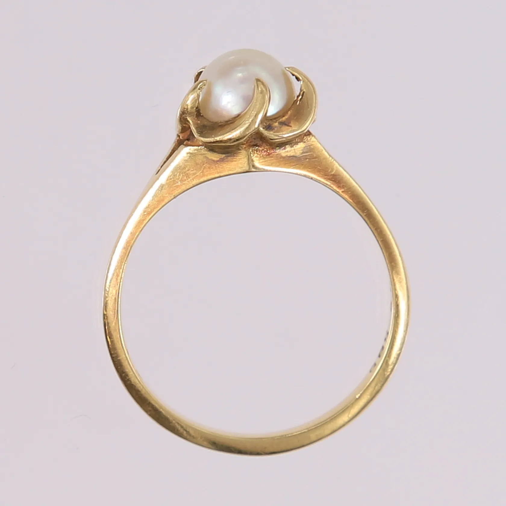 Ring med perle, ø17,3mm, bredde 1,7- 9mm, 14K Vekt: 2,7 g. Kontakt Lånekontoret for frakt.