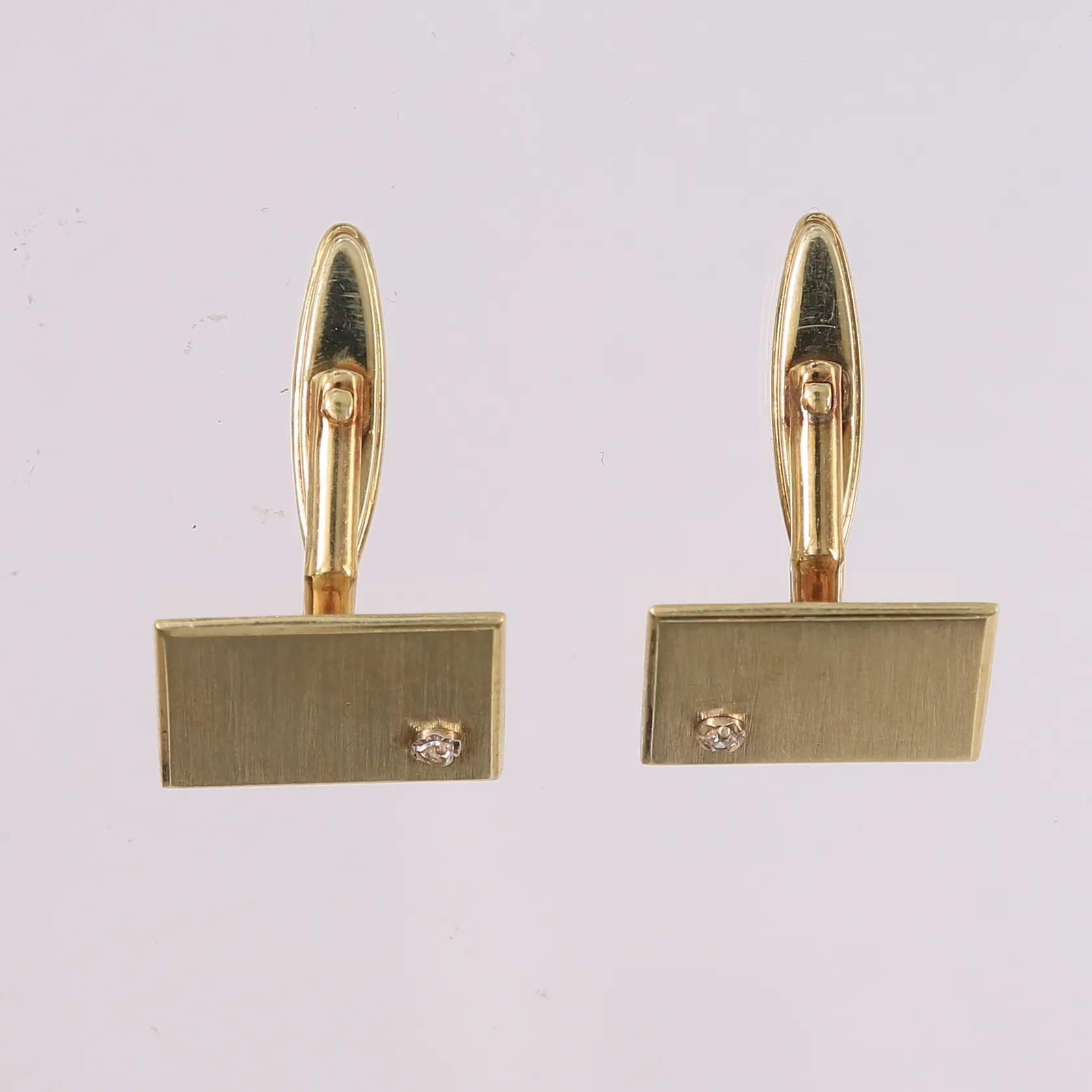 Mansjettknapper med diamanter (2 x ca. 0,02ct), 17x15 mm, 14K. Vekt: 8,8 g. Kontakt Lånekontoret for frakt.