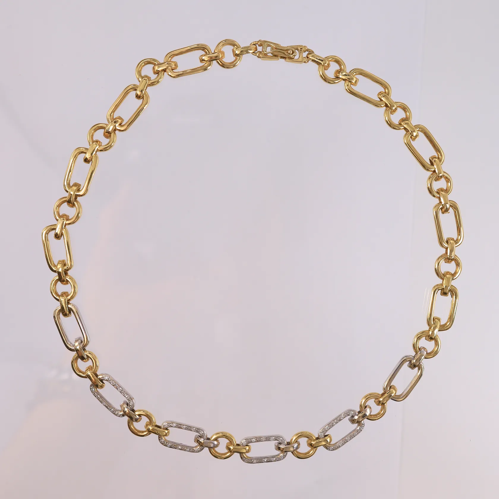 Halssmykke med diamanter (40 x ca. 0,006ct), to-farget, lengde 44 cm, bredde 10 mm, 18K. Vekt: 57,4 g. Kontakt Lånekontoret for frakt.