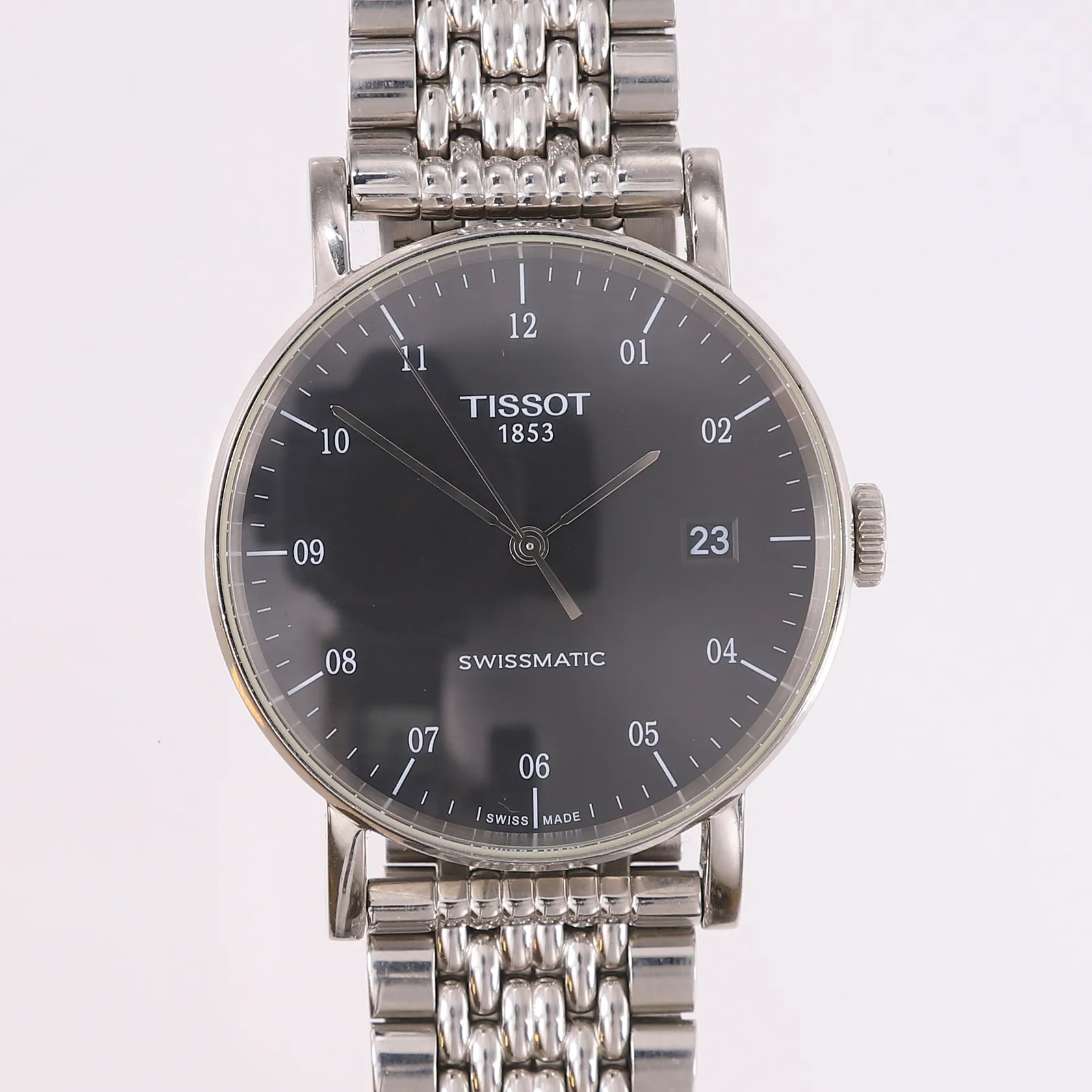Tissot T-Classic Everytime Swissmatic, stål, stål-lenke, automatisk, safirglass, ref. T109.407.16.051.00, snr: RRD2FY49H, ø40 mm, sort urskive, uten boks og tilbehør Kontakt Lånekontoret for frakt.