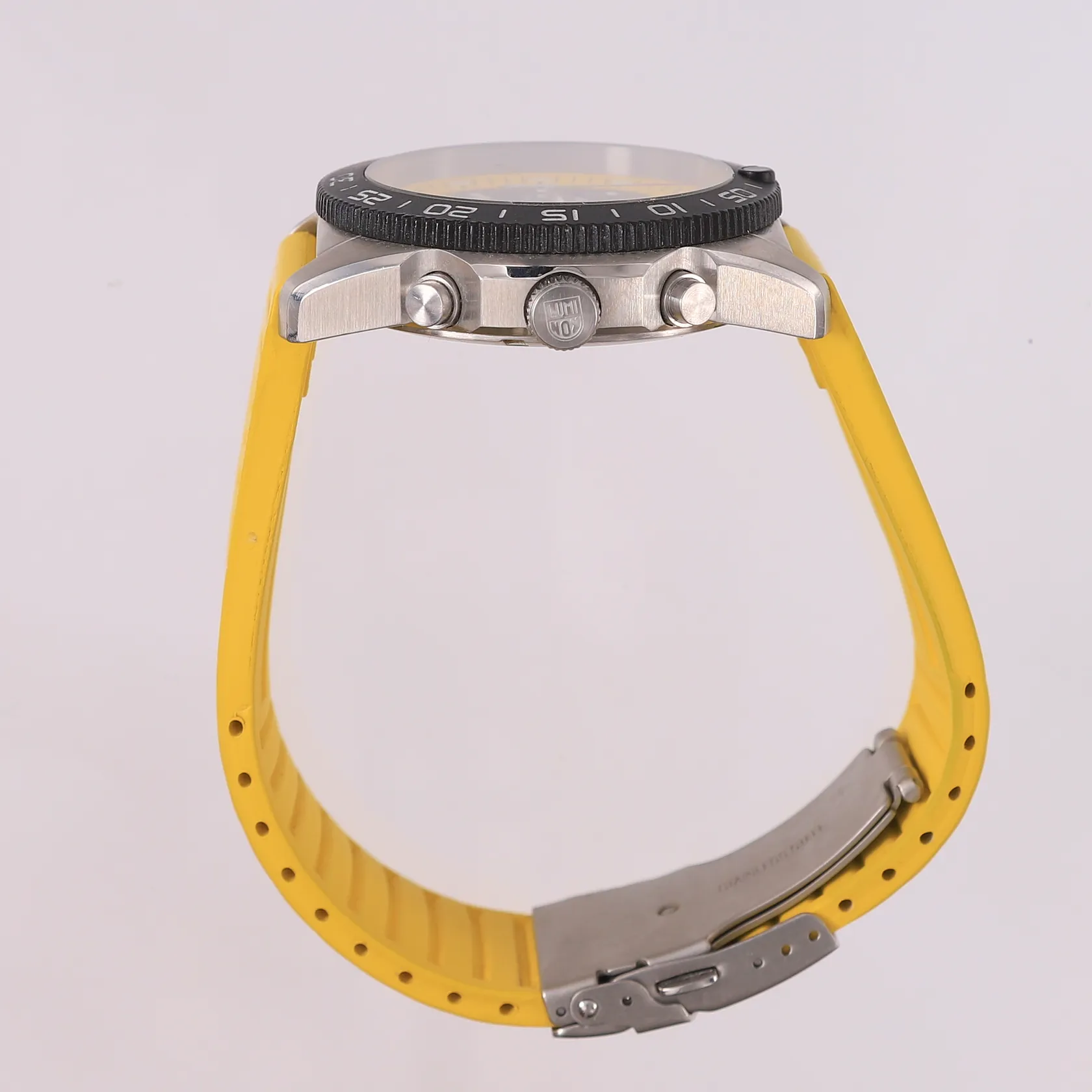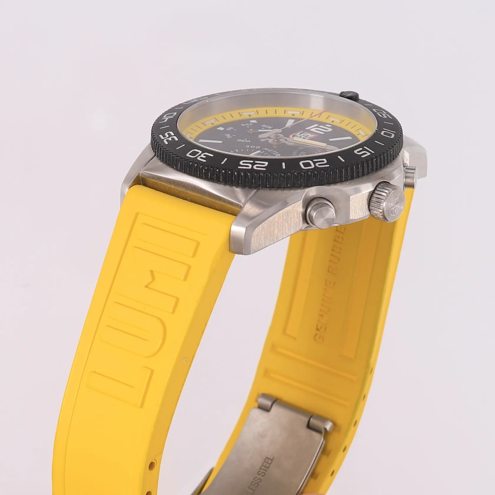Luminox Pacific Diver armbåndsur, sort/gul, quartz, stål/carbonox, ø44 mm, ref. 3140.06754, XS.3145, silikon-rem, kronograf, safirglass, bruksslitasje, uten boks og tilbehør. Kontakt Lånekontoret for frakt.