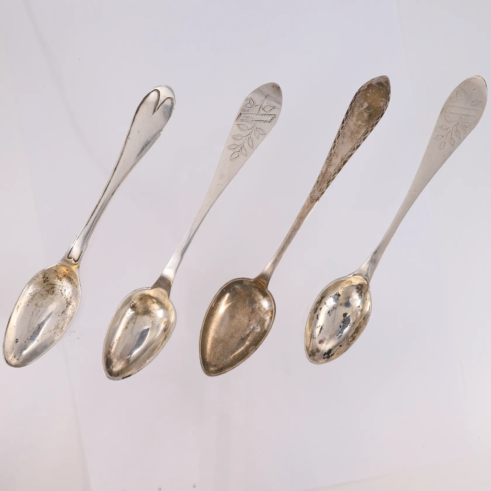 4 teskjeer, graverte, 830S Vekt: 57,9 g. Kontakt Lånekontoret for frakt.