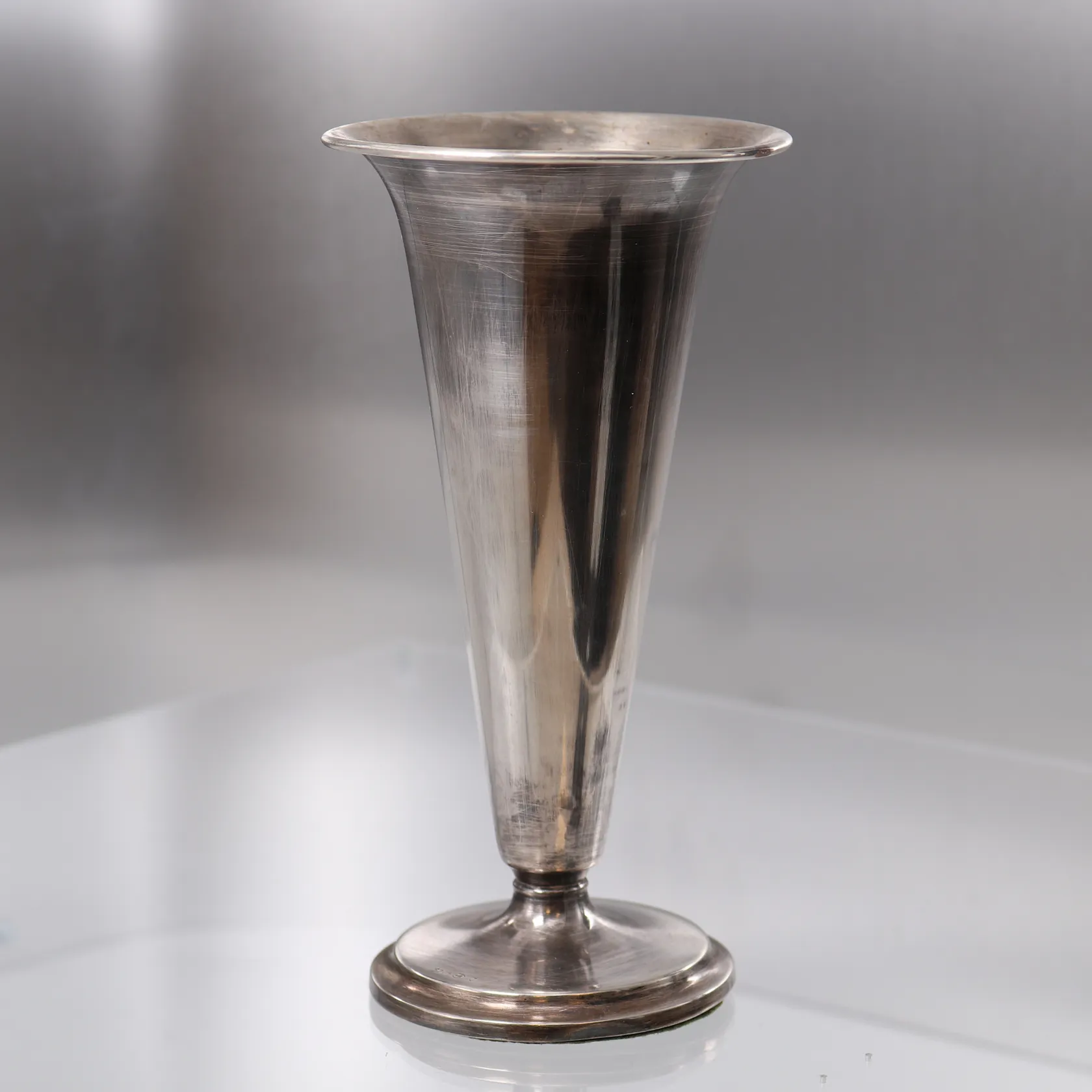 Sølvbeger med gipsfylt bunn, ø15- 90mm, høyde 17cm, bulkete, 830S, bruttovekt 145,6g Kontakt Lånekontoret for frakt.