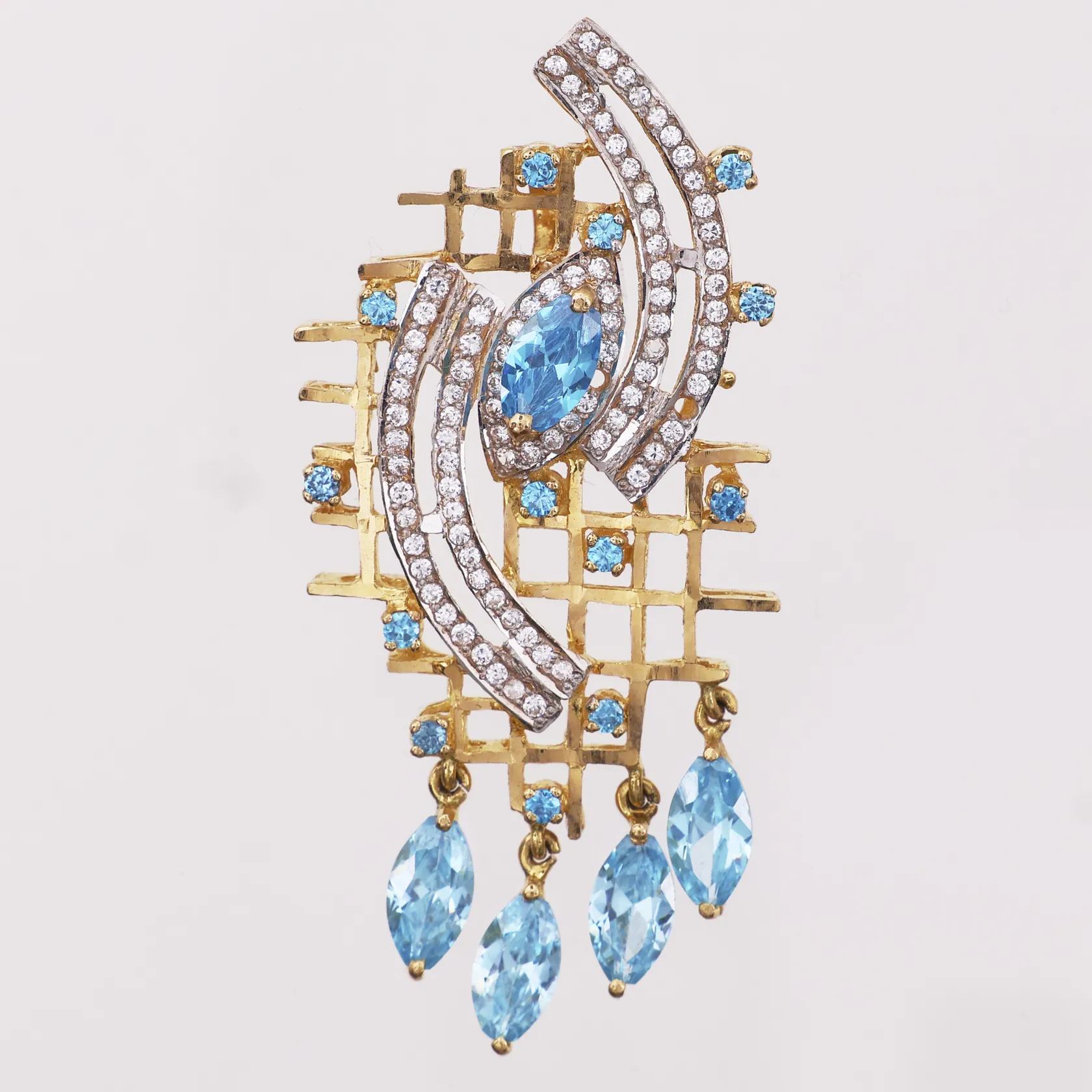 Anheng, med blå og blanke stener, 6x6cm, flere stener mangler, 21K Vekt: 14,4 g. Kontakt Lånekontoret for frakt.