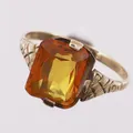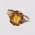 Ring med orange sten, ø 17,5mm, bredde 1,7 - 11,5mm, sten sitter løst på, 14K Vekt: 2,2 g. Kontakt Lånekontoret for frakt.