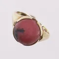 Ring med rosa sten, ø 17mm, bredde 2 - 12,8mm, 14K Vekt: 5 g. Kontakt Lånekontoret for frakt.
