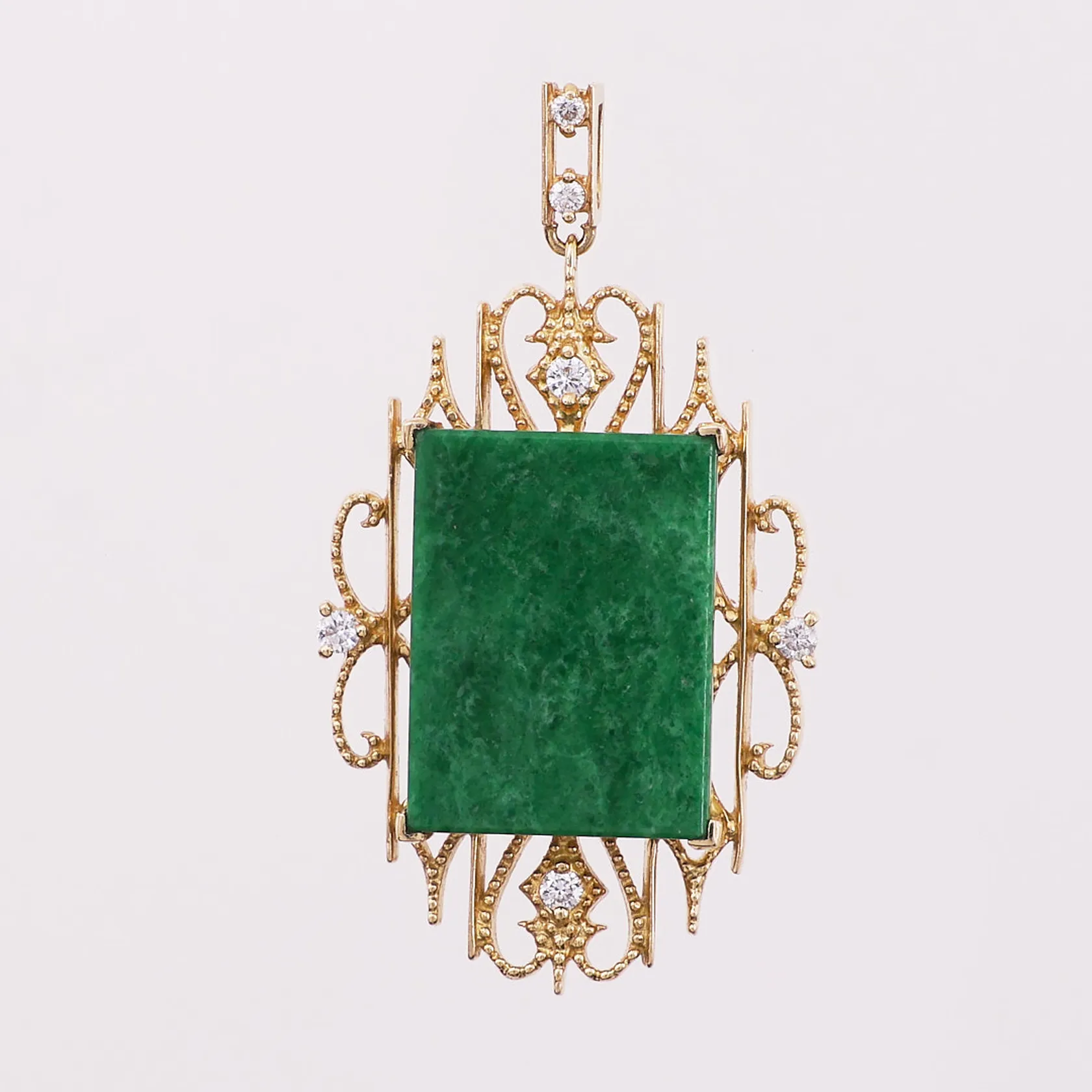 Anheng, med grønn sten, og diamanter, 6 x ca 0,01ct,30x20mm, 18K Vekt: 6,6 g. Kontakt Lånekontoret for frakt.