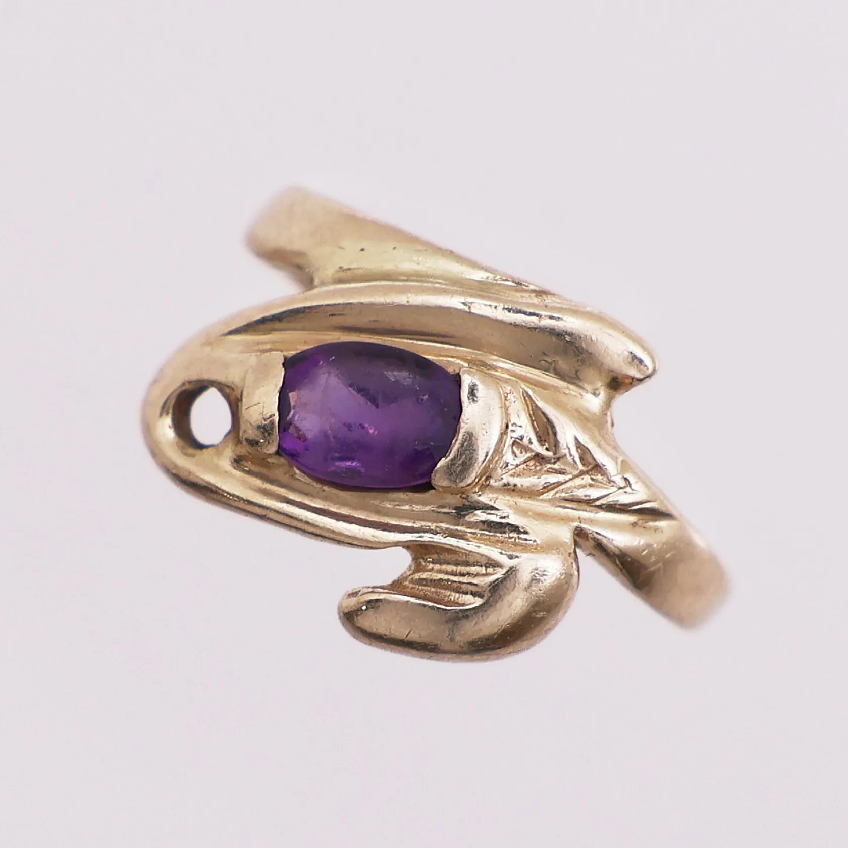 Ring med lilla sten, ø 15,7mm, bredde 1,8mm, 14K Vekt: 2,6 g. Kontakt Lånekontoret for frakt.