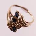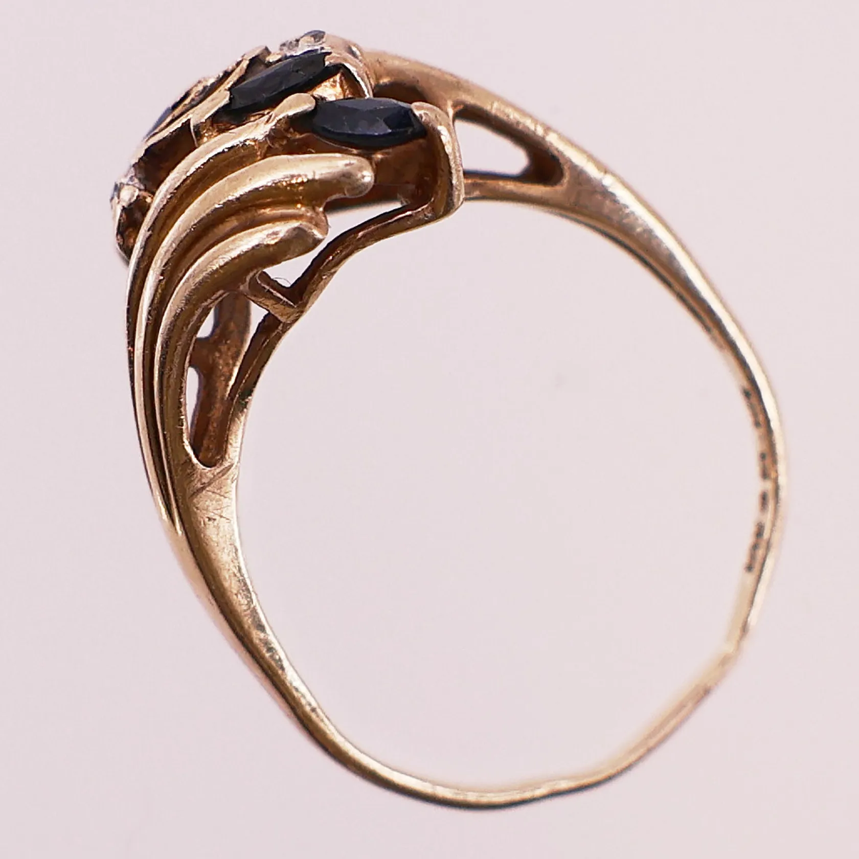 Ring med blå og blanke stener, ø 16mm, bredde 1,2 - 12,3mm 10K Vekt: 2,4 g. Kontakt Lånekontoret for frakt.