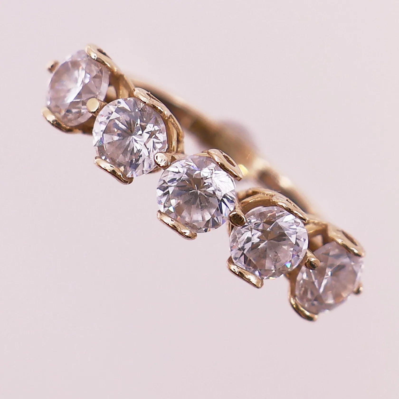 Ring med klare stener, ø 15,5mm, bredde 1,8 - 5,8mm, 14K Vekt: 3,2 g. Kontakt Lånekontoret for frakt.