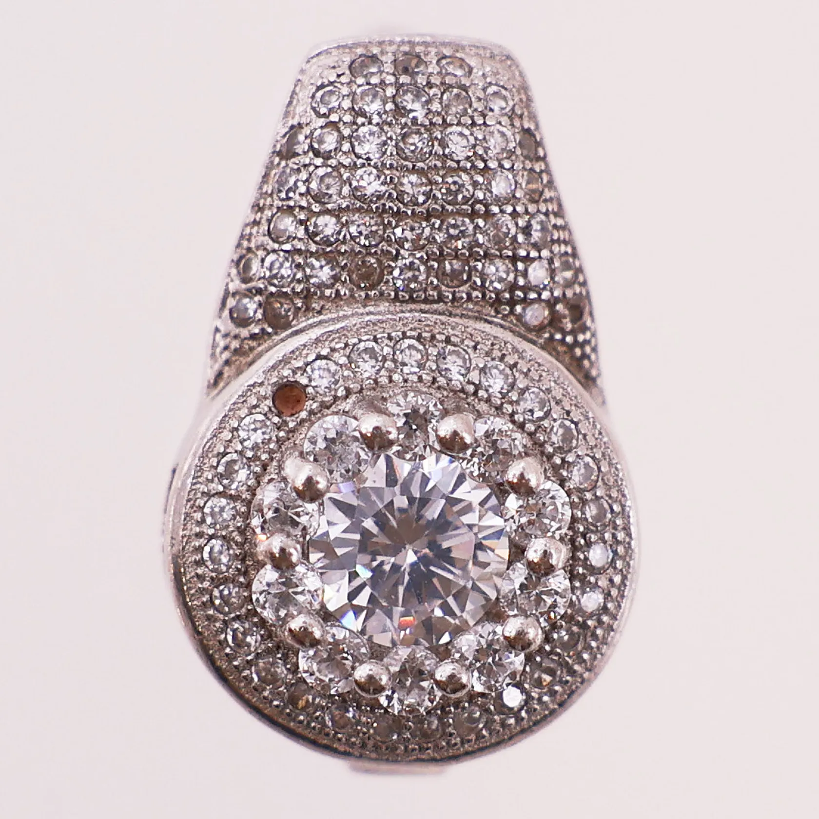 Øredobb med klare stener, lengde 19.7mm, bredde 12,6mm, 925S Vekt: 4,1 g. Kontakt Lånekontoret for frakt.