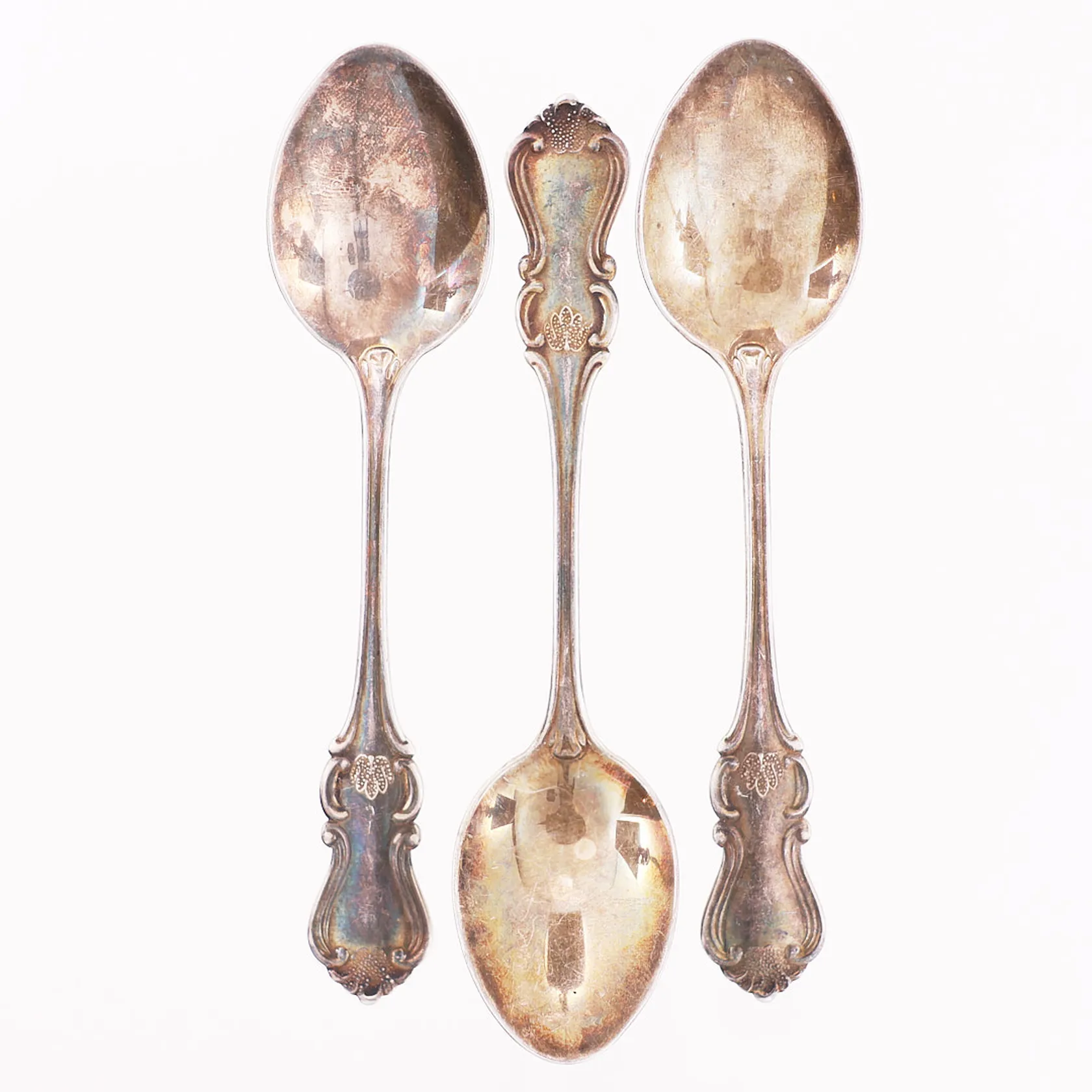 3 teskjeer, lengde 11,5cm, 830S Vekt: 41,5 g. Kontakt Lånekontoret for frakt.