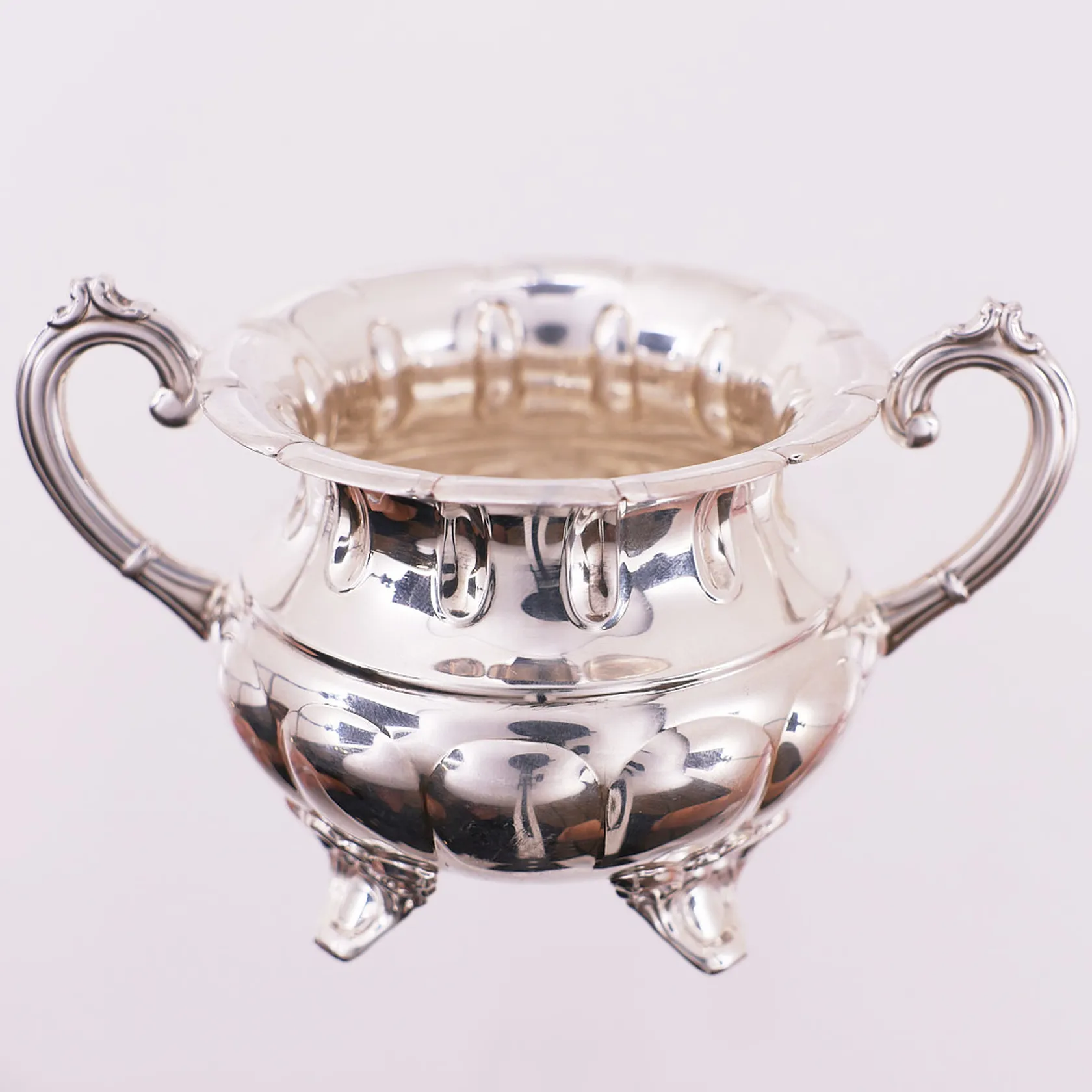 Sukkerskål, lengde 11,5cm, høyde 7cm, innvendig ø 5cm, 830S Vekt: 103,6 g. Kontakt Lånekontoret for frakt.