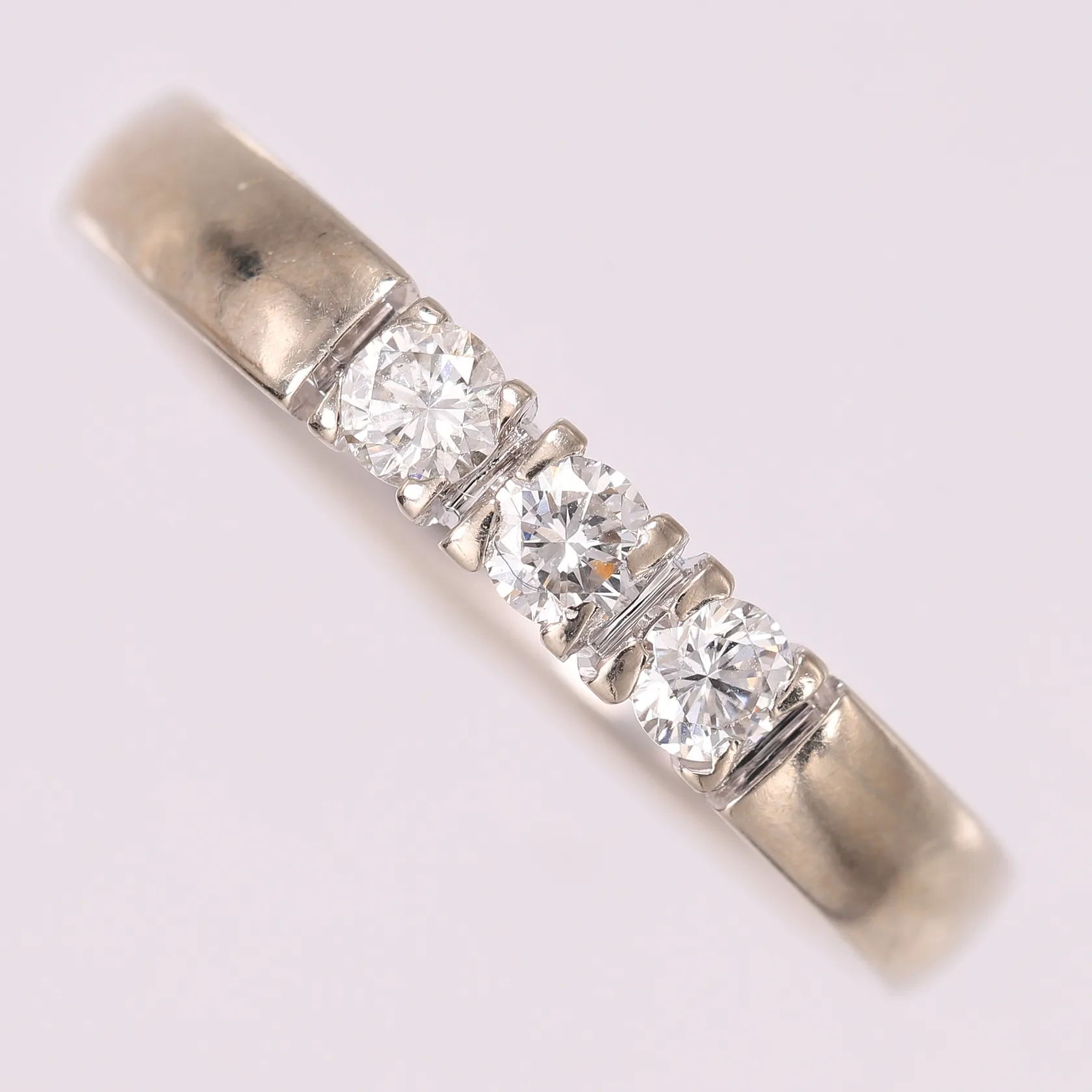 Ring med diamanter (3 x ca. 0,15ct), ø17mm, bredde 3mm, hvitt gull, 14K Vekt: 4,4 g. Kontakt Lånekontoret for frakt.
