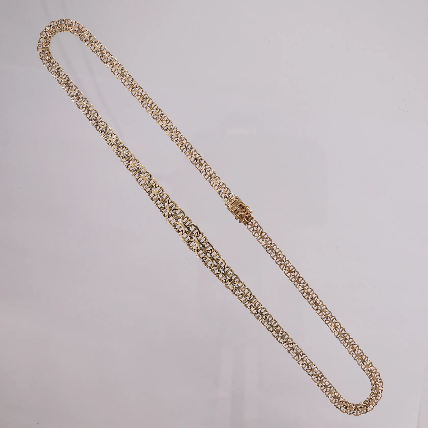 Kjede X med stav, lengde 49cm, bredde 5-9mm, 14K Vekt: 18,5 g. Kontakt Lånekontoret for frakt.