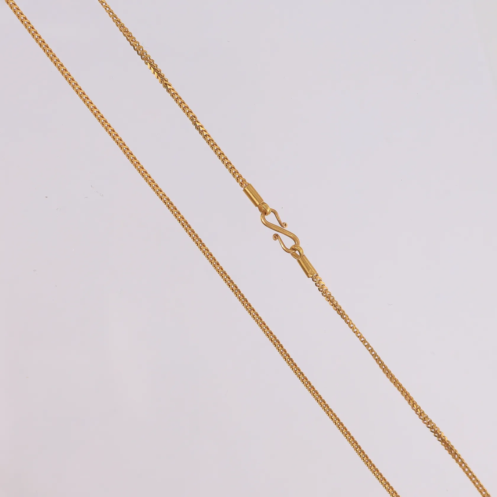 Kjede, lengde 47cm, bredde 1,5mm, 21K Vekt: 6,1 g. Kontakt Lånekontoret for frakt.