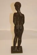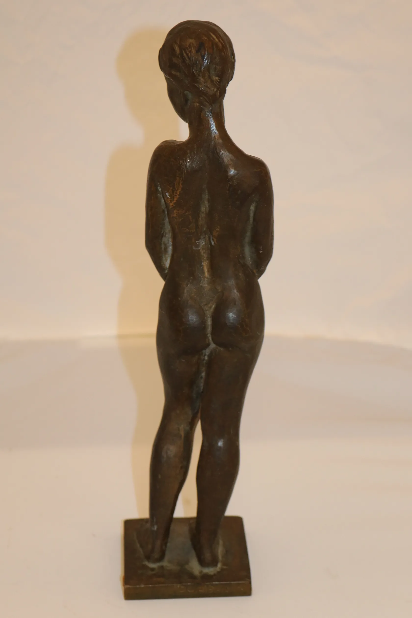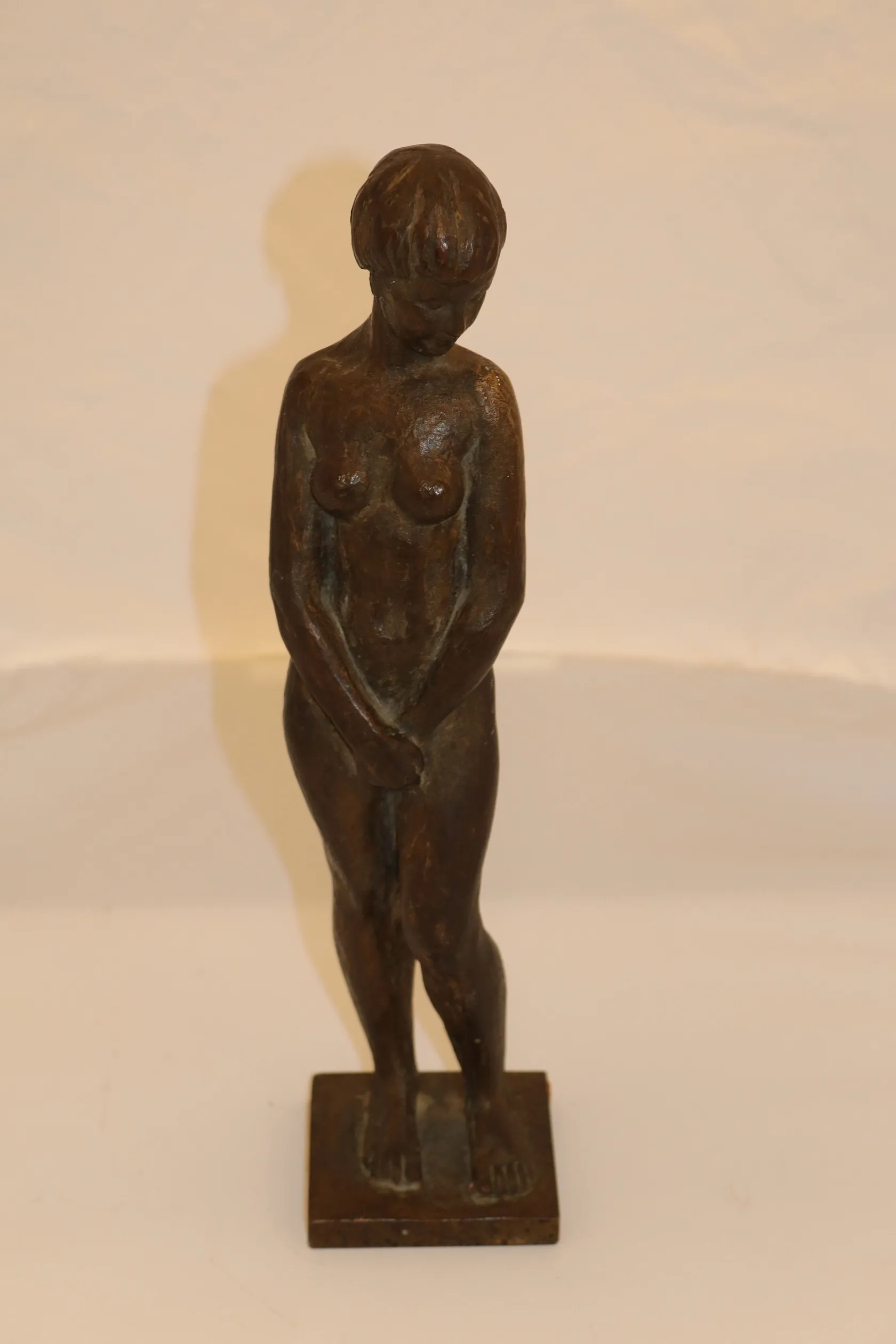 Skulptur, stående kvinneakt av Arne Durban i bronse, høyde 35 cm, diameter ca. 8cm, vekt 4413g Kontakt Lånekontoret for frakt.