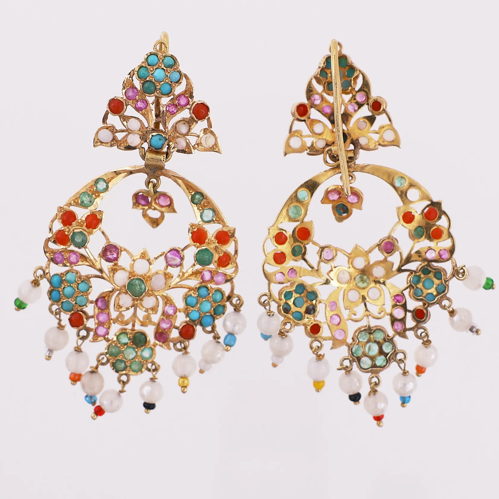 Ett par øredobber med fargede stener, 50x30mm (flere stener mangler) 21K Vekt: 19,3 g. Kontakt Lånekontoret for frakt.