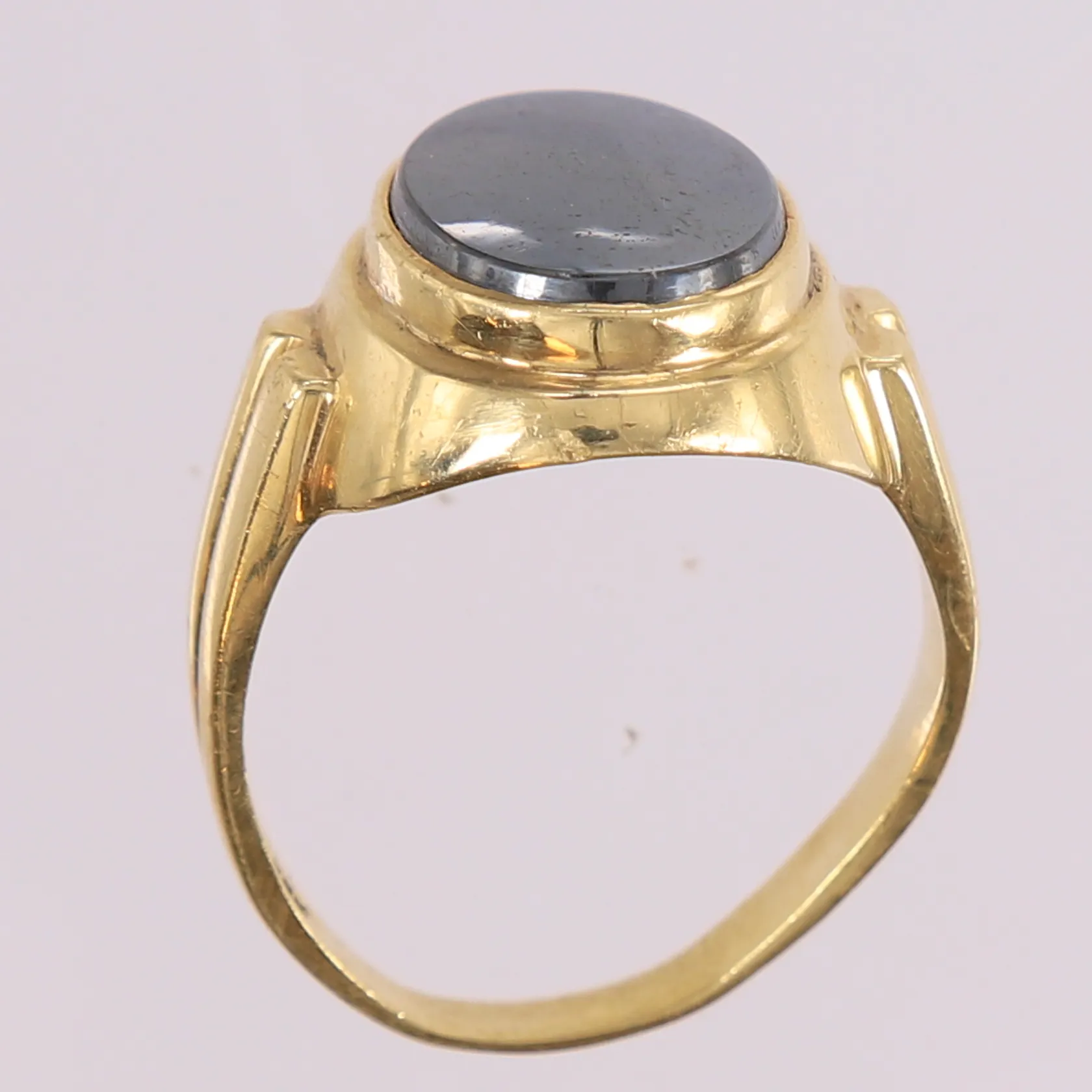 Ring med svart sten, ø 20,5mm, 3 - 18mm, 14K Vekt: 10,8 g. Kontakt Lånekontoret for frakt.