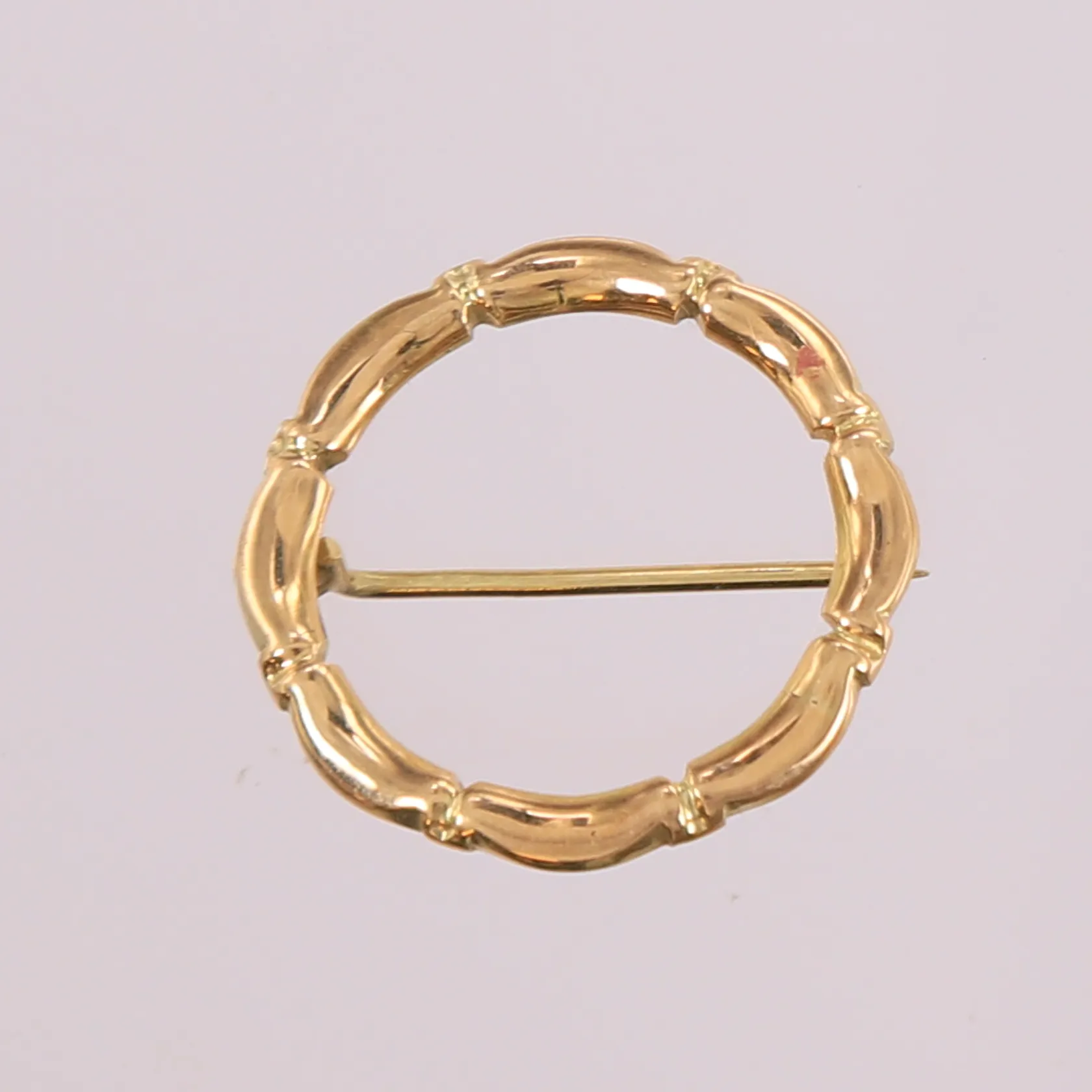 Nål, diameter 18,5 mm, 14K. Vekt: 1,5 g. Kontakt Lånekontoret for frakt.