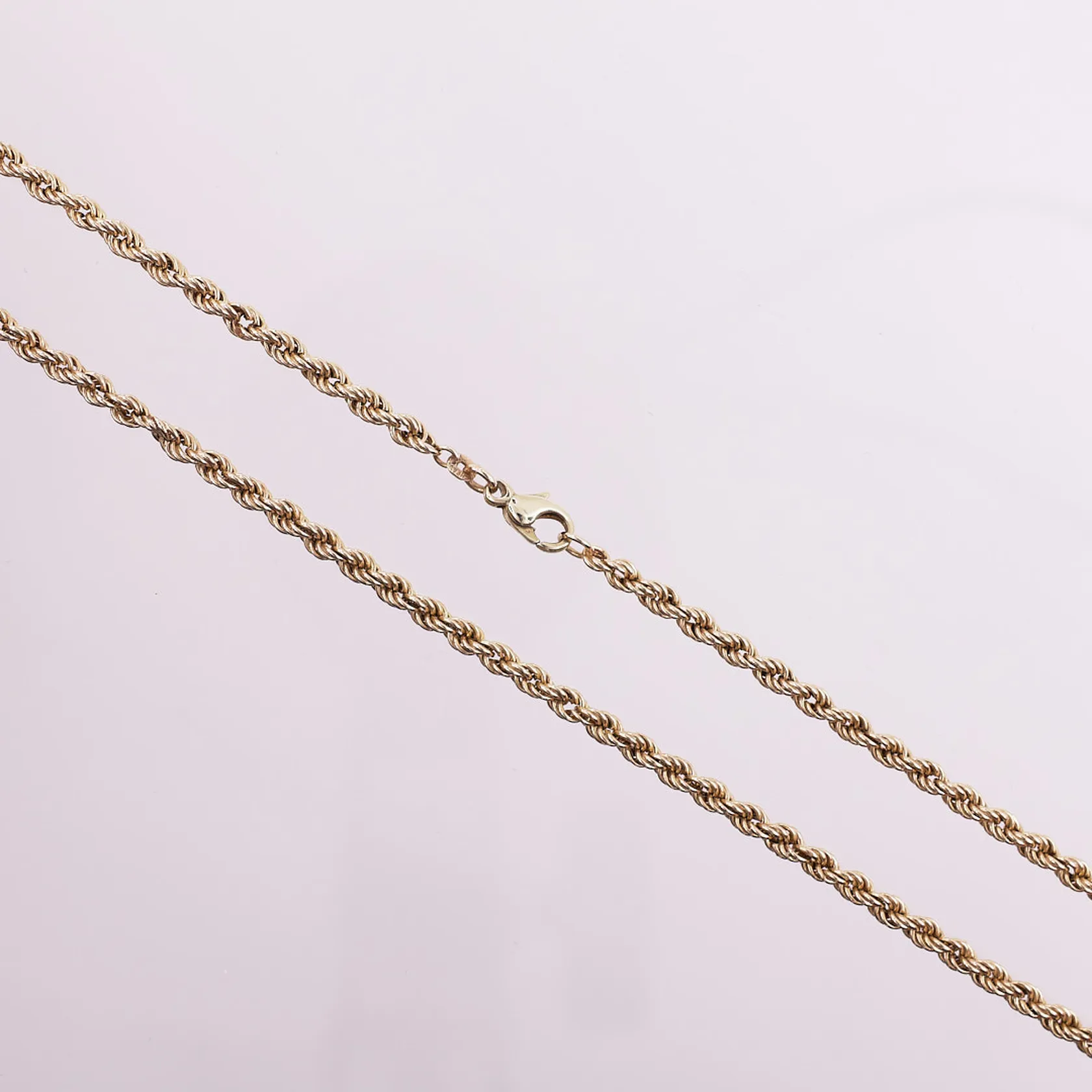 Halskjede cordel, lengde 63,2 cm, bredde 3,4 mm, defekt mønster, 14K Vekt: 11,3 g. Kontakt Lånekontoret for frakt.