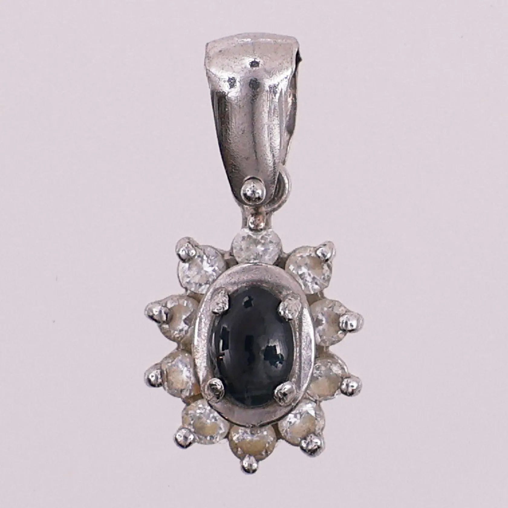 Anheng med klare og sort sten, lengde 21 mm, 10,3 mm, 18K Vekt: 2,1 g. Kontakt Lånekontoret for frakt.