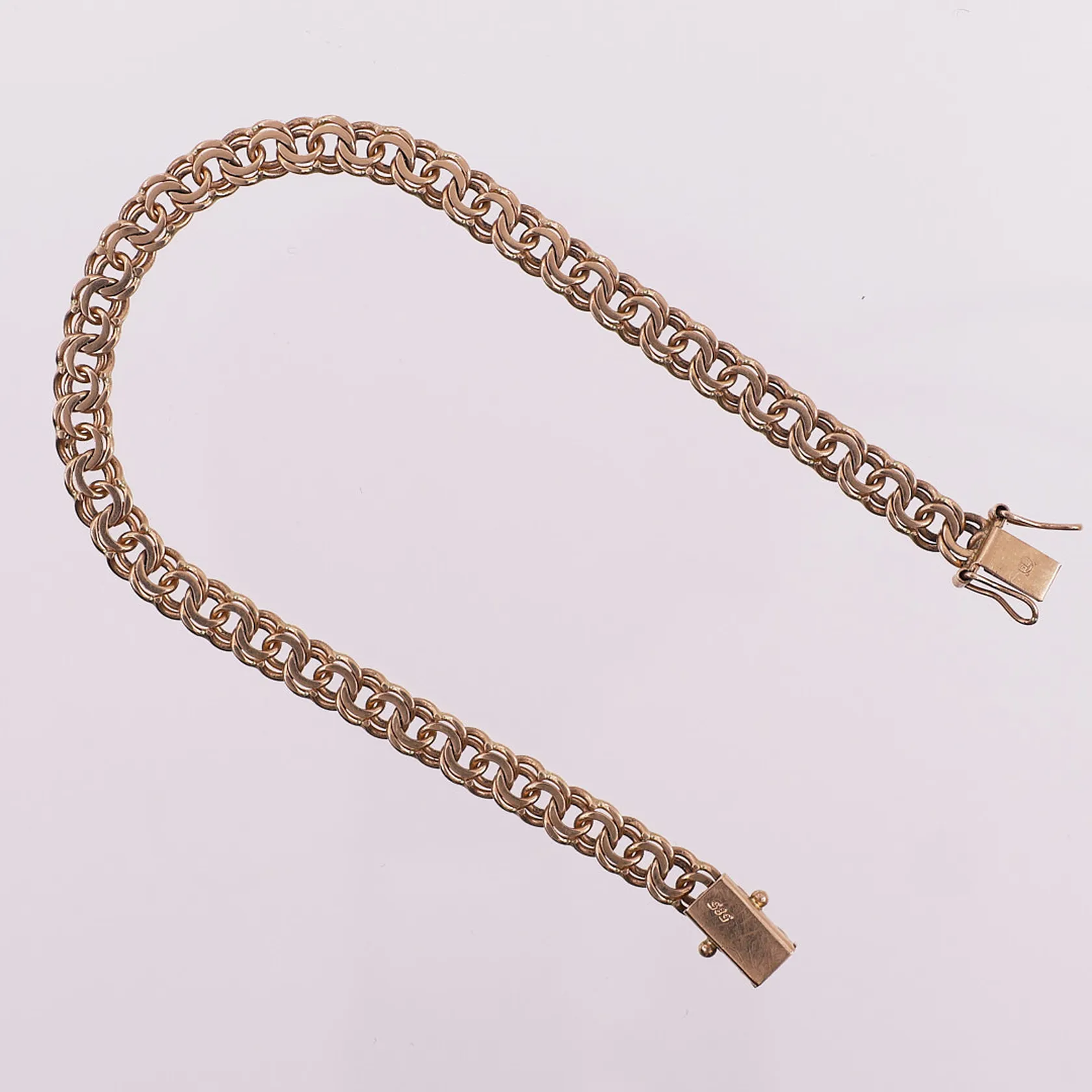 Armbånd bismarck, lengde 19 cm, bredde 5 mm, 14K Vekt: 9,4 g. Kontakt Lånekontoret for frakt.