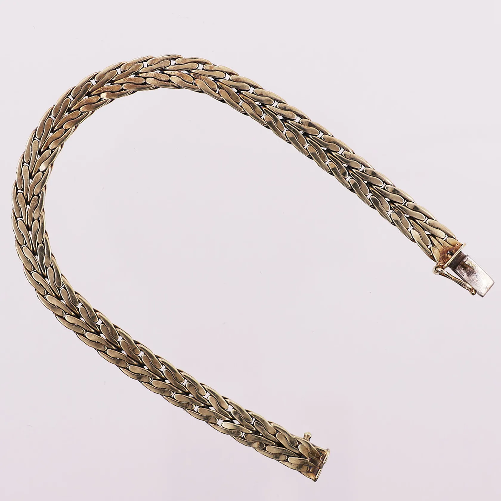 Armbånd, Ø ca 68 mm, bredde 6,6 mm, defekt lås, 14K Vekt: 24,3 g. Kontakt Lånekontoret for frakt.