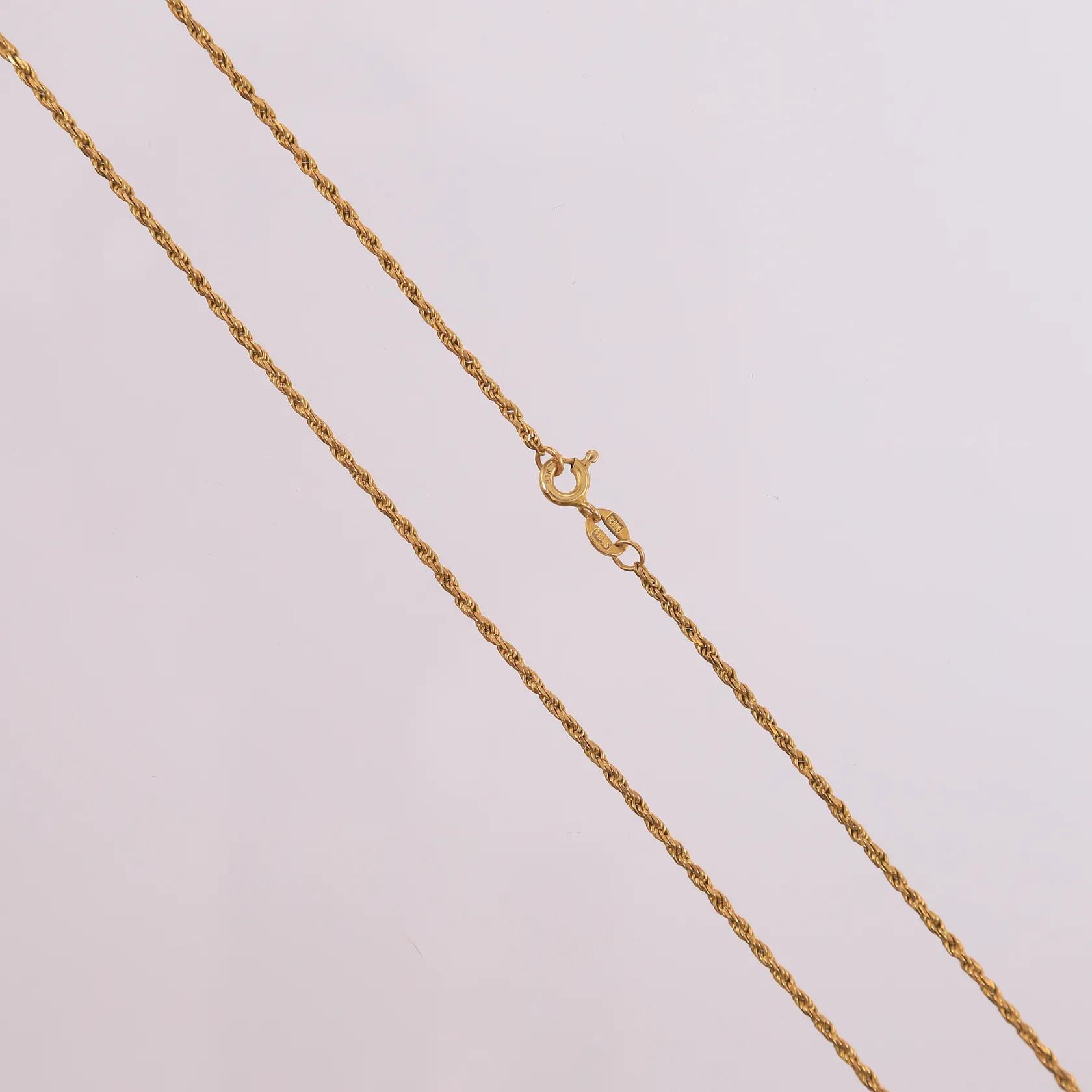 Kjede, lengde 50cm, bredde 1mm, 21K Vekt: 6,7 g. Kontakt Lånekontoret for frakt.