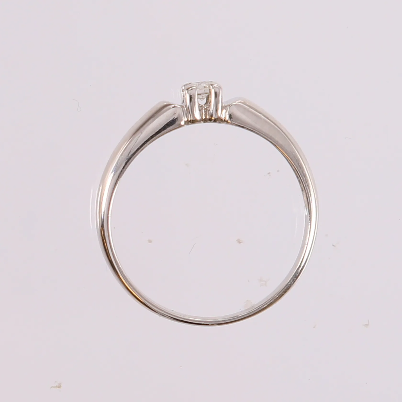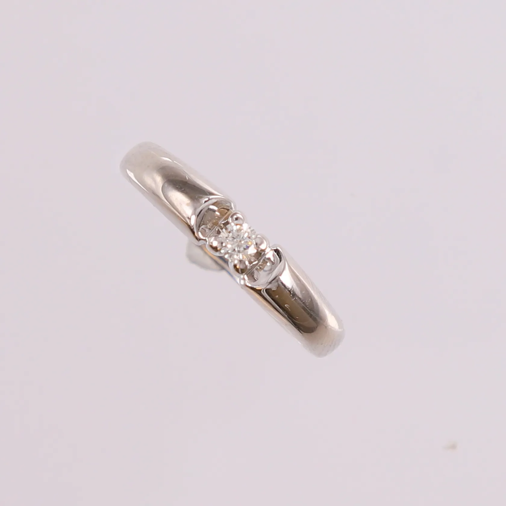 Ring med diamant 1 x ca. 0,05ct, ø16,5mm, bredde 1,6- 2,7mm, 14K Vekt: 1,7 g. Kontakt Lånekontoret for frakt.