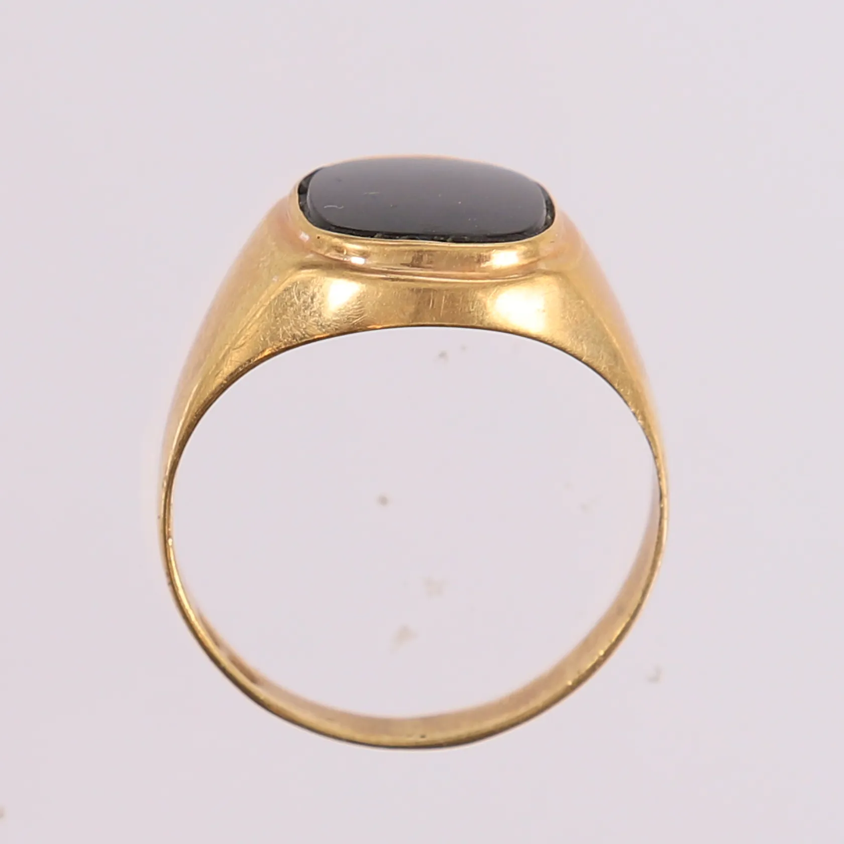 Ring med svart sten, ø 19mm, 3,2 - 14,3mm, 14K Vekt: 3,3 g. Kontakt Lånekontoret for frakt.