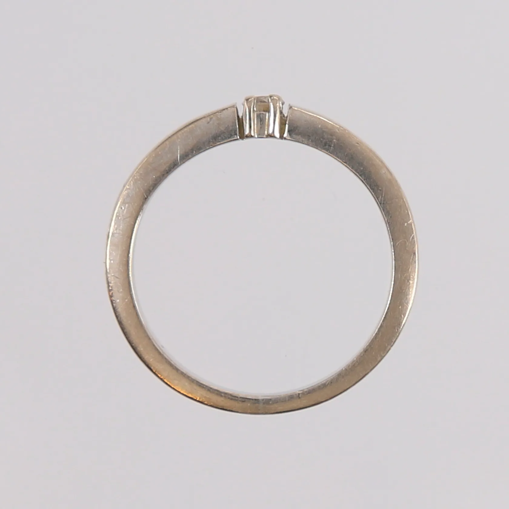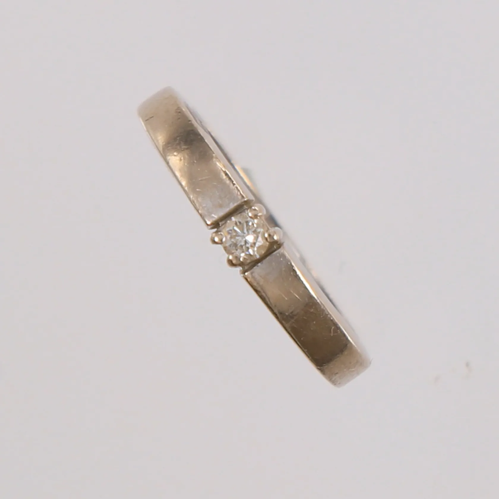 Ring med diamant ca 0,10ct, ø 12mm, bredde 2,6 - 3,2mm, 14K Vekt: 3,9 g. Kontakt Lånekontoret for frakt.