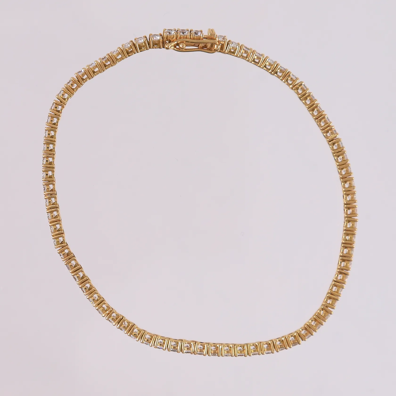 Tennisarmbånd med 72 blanke stener, lengde 18cm, bredde 2,5mm, slitt lås, 18K Vekt: 7,9 g. Kontakt Lånekontoret for frakt.