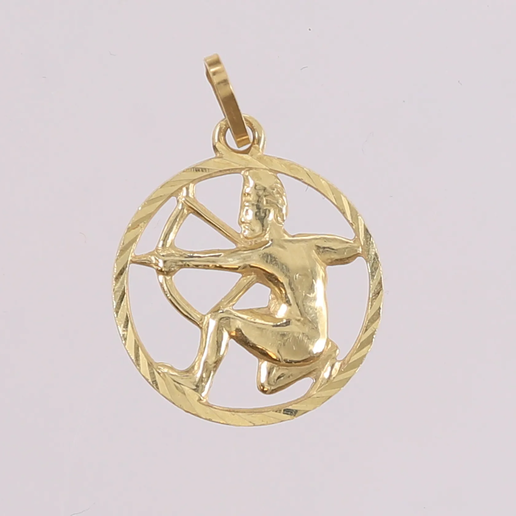 Anheng skytten, ca ø15mm, 14K gull. Vekt: 1 g. Kontakt Lånekontoret for frakt.